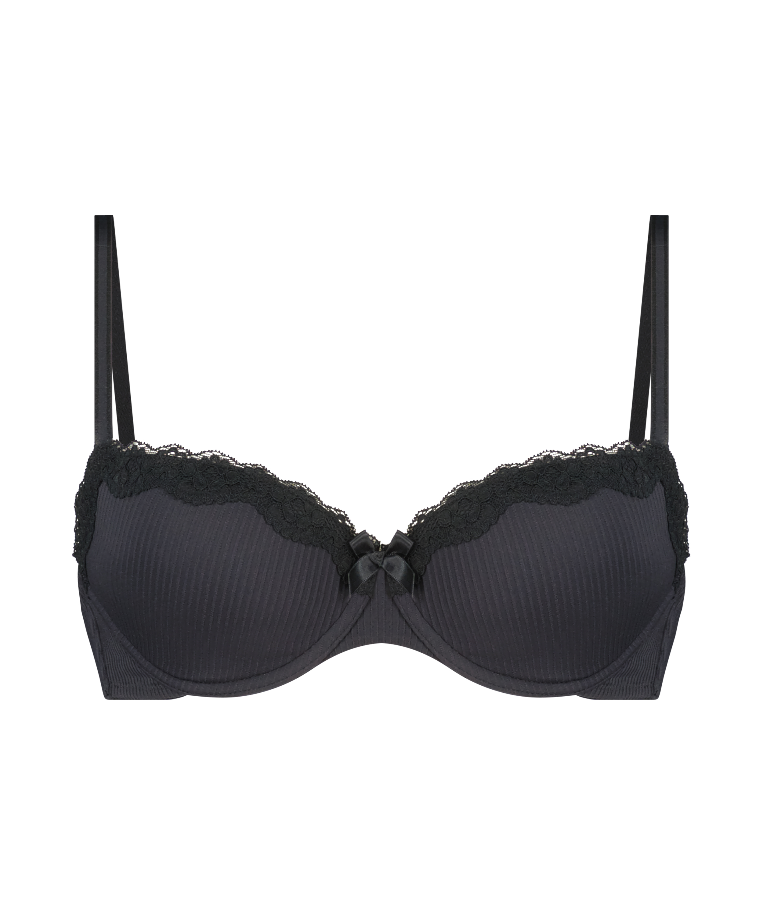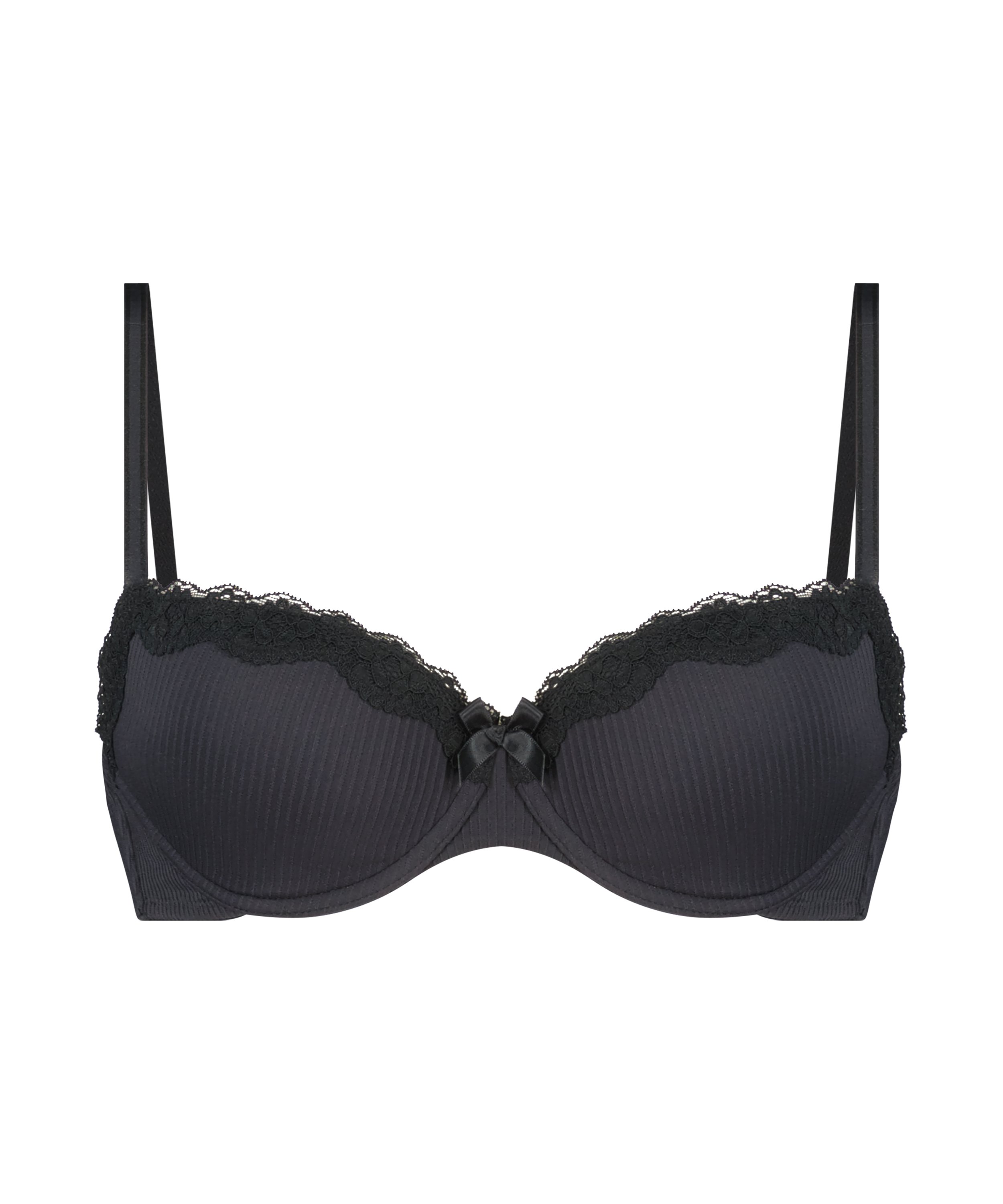 Ten usztywniany biustonosz z fiszbinami jest wykończony koronkowymi detalami w górnej części miseczek. Pomiędzy miseczkami znajduje się mała kokardka, która dodaje seksownego wyglądu. Połącz go z dopasowanymi elementami!