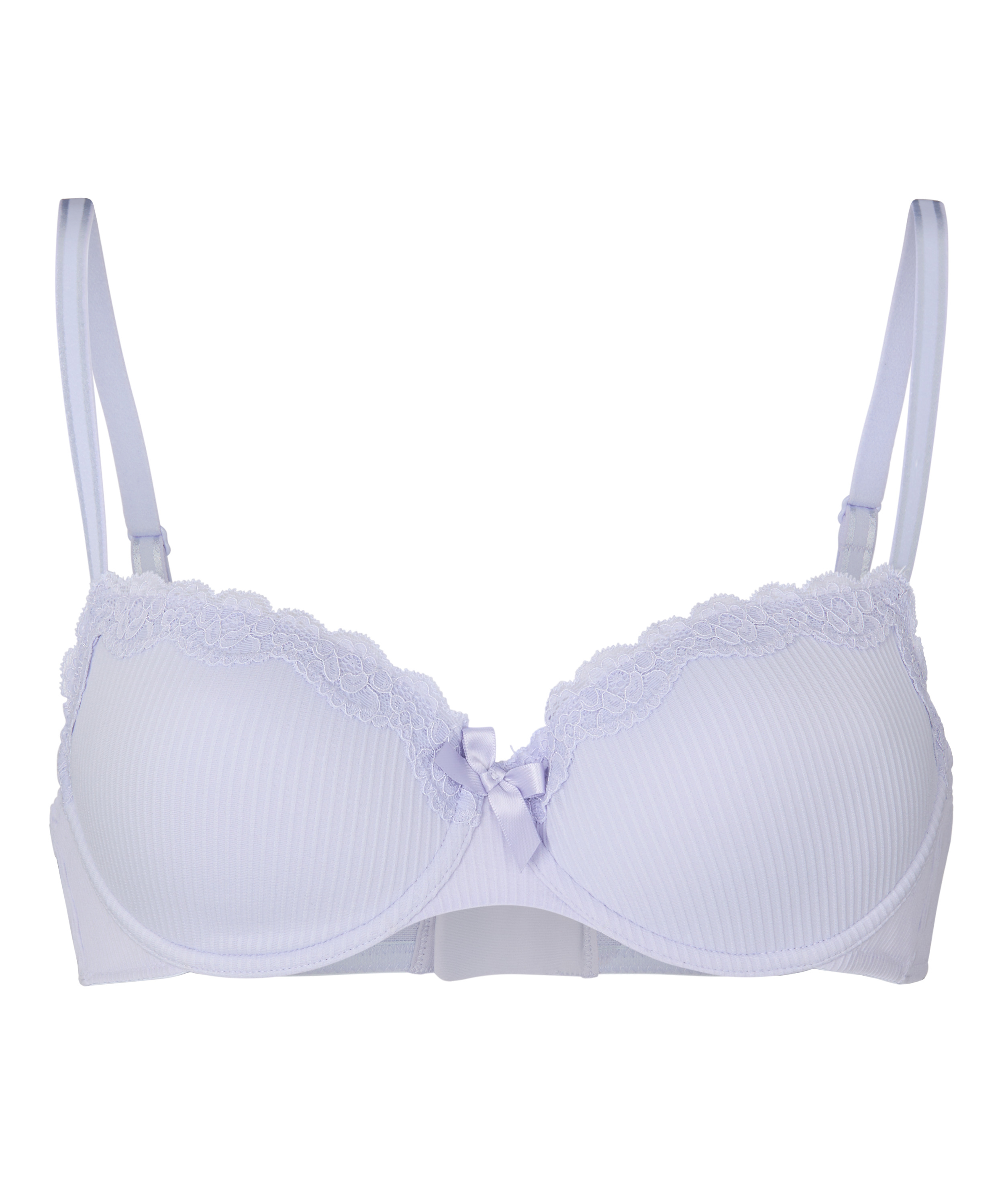 Ten usztywniany biustonosz z fiszbinami jest wykończony koronkowymi detalami w górnej części miseczek. Pomiędzy miseczkami znajduje się mała kokardka, która dodaje seksownego wyglądu. Połącz go z dopasowanymi elementami!