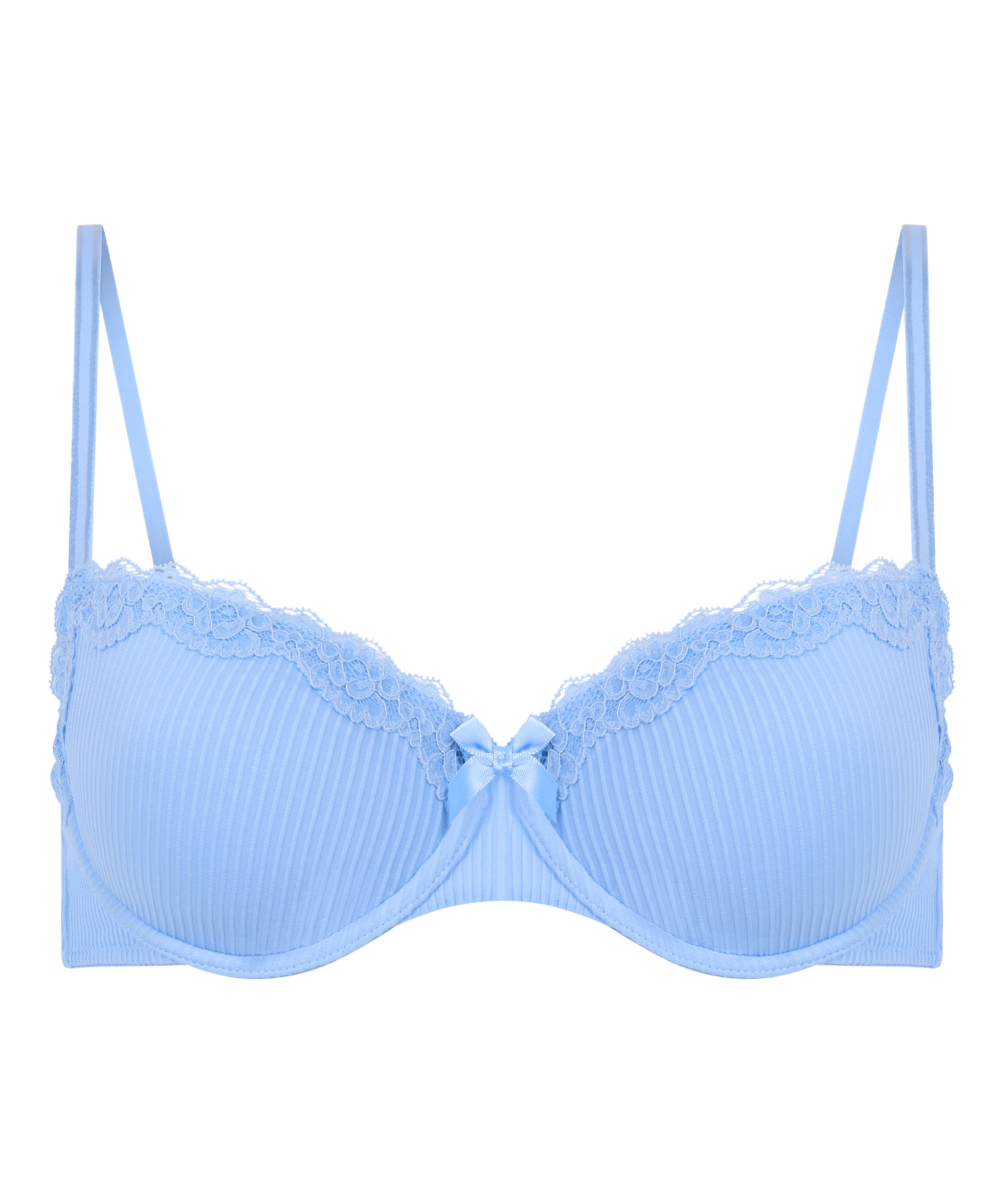 Ten usztywniany biustonosz z fiszbinami jest wykończony koronkowymi detalami w górnej części miseczek. Pomiędzy miseczkami znajduje się mała kokardka, która dodaje seksownego wyglądu. Połącz go z dopasowanymi elementami!