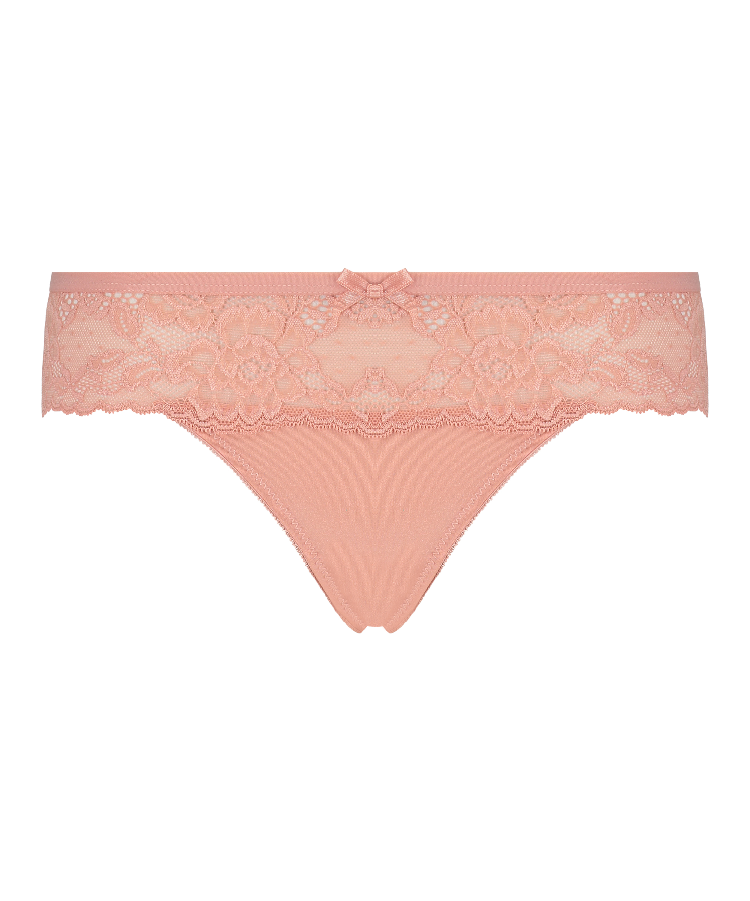 Stringi typu bokserki wykonane z koronki i mikrofibry. Ozdobę stanowi mała kokardka z przodu.