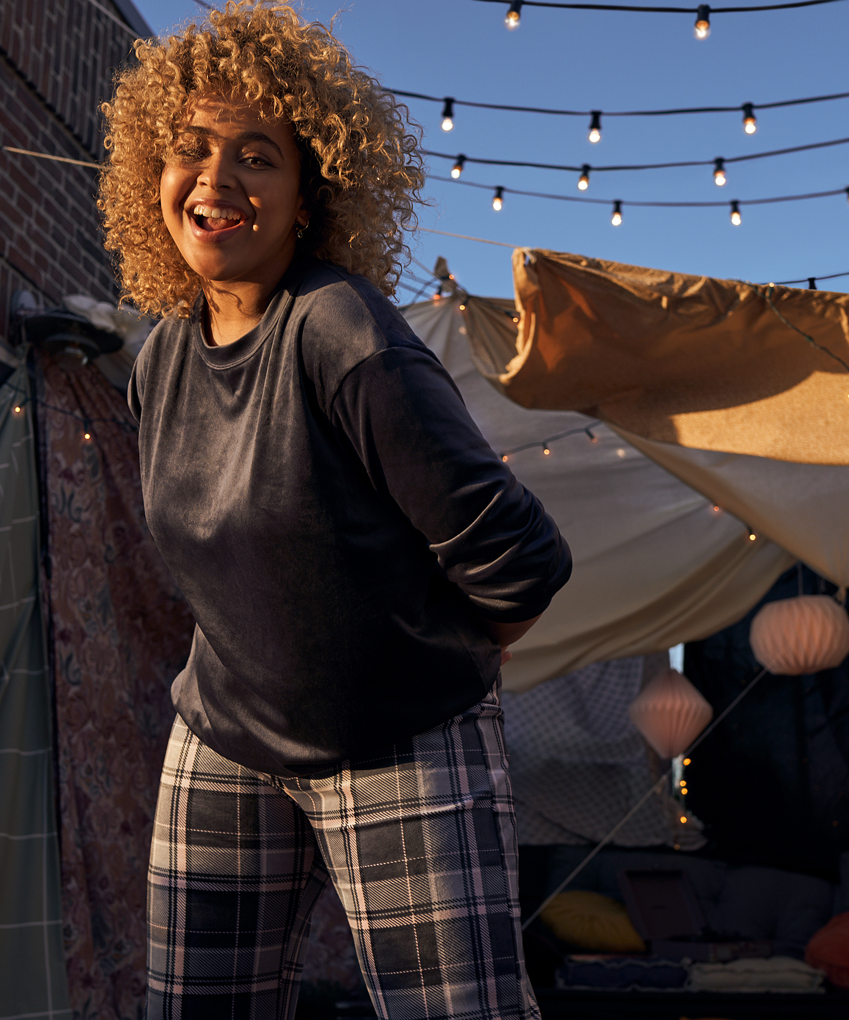 Ogrzej się tej zimy w tej miękkiej piżamie! Zestaw jest w całości wykonany z aksamitu. Spodnie mają piękny nadruk. Idealna na wieczór na kanapie.