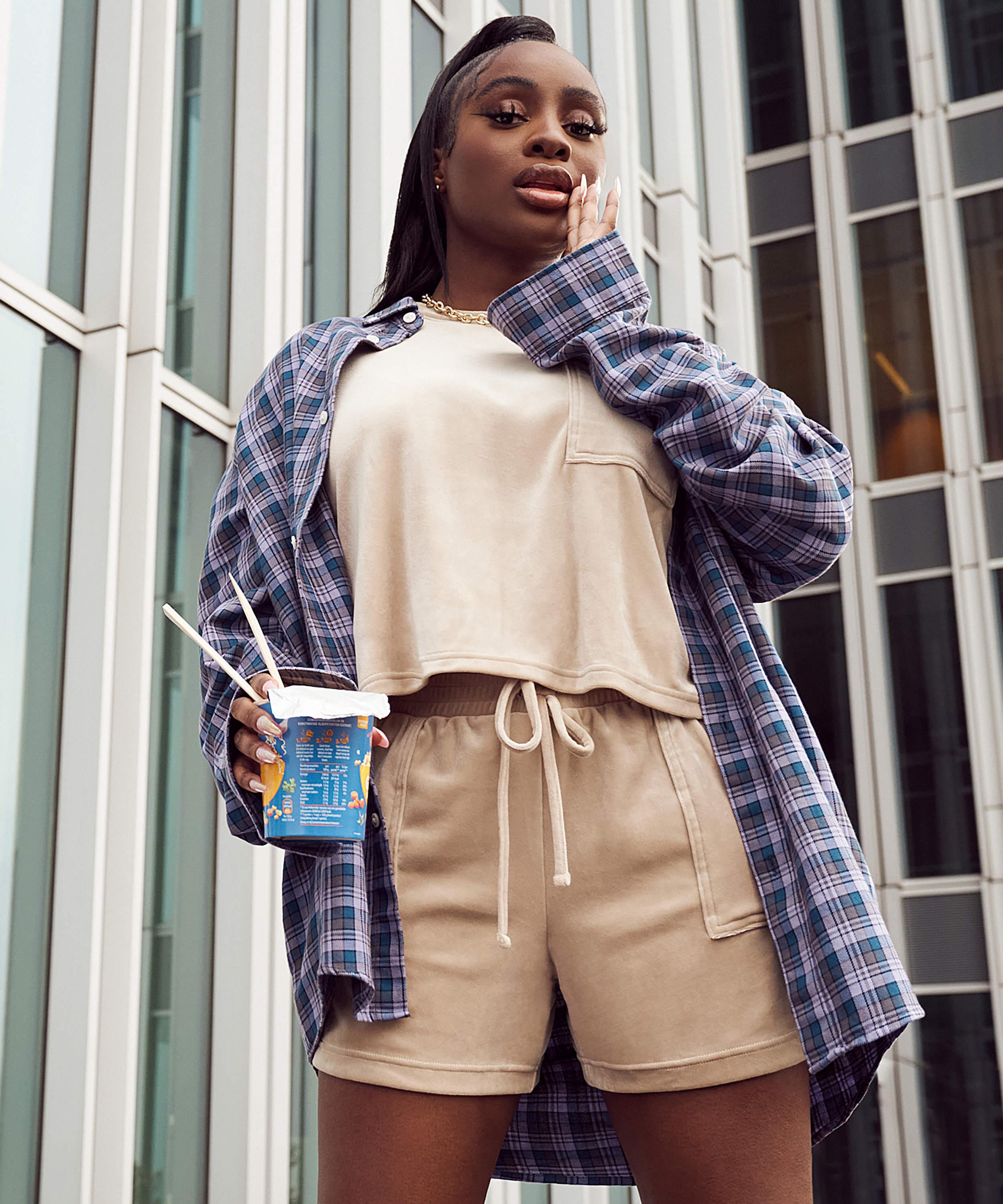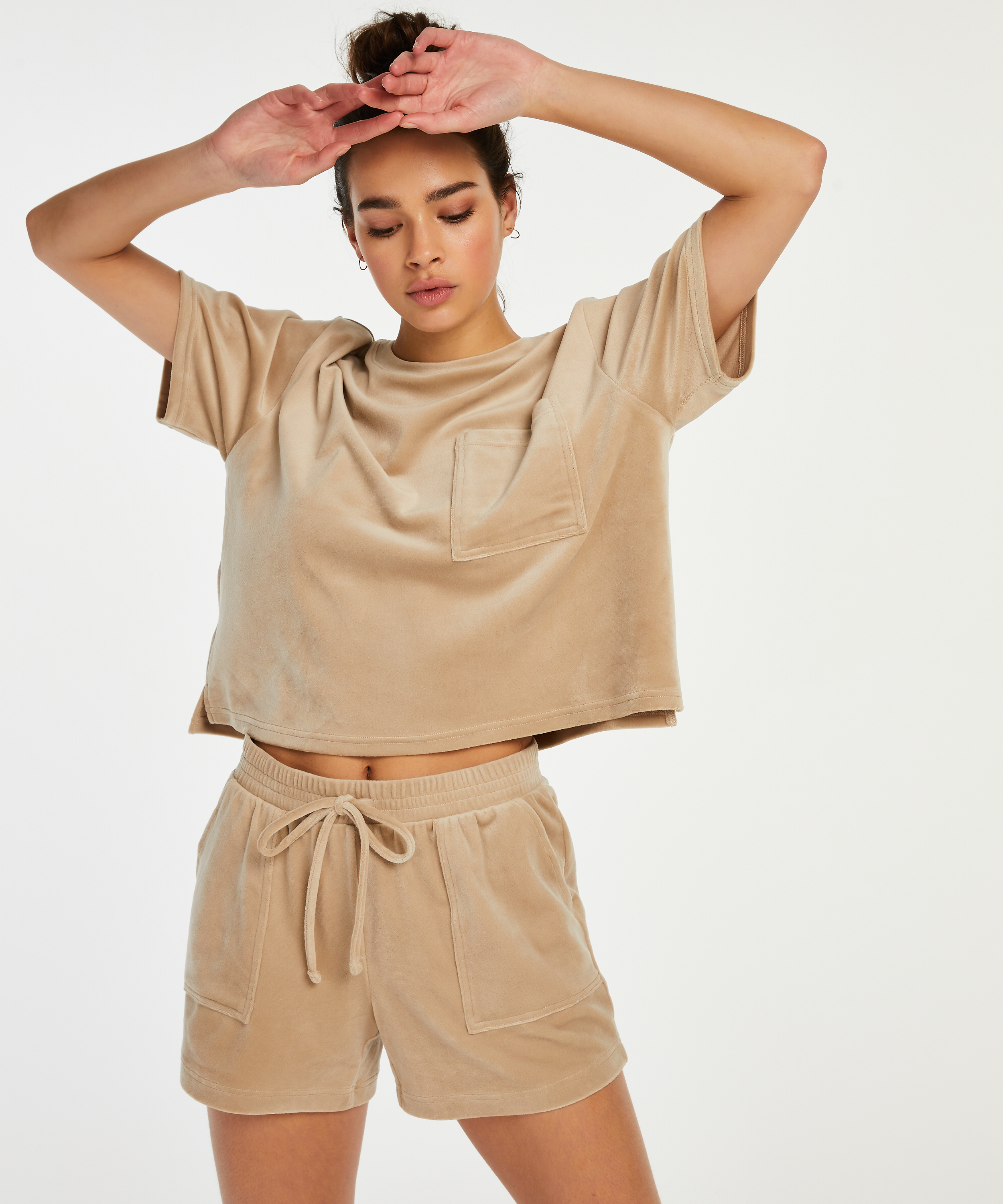 Aksamitne szorty z kieszenią - Beżowy
