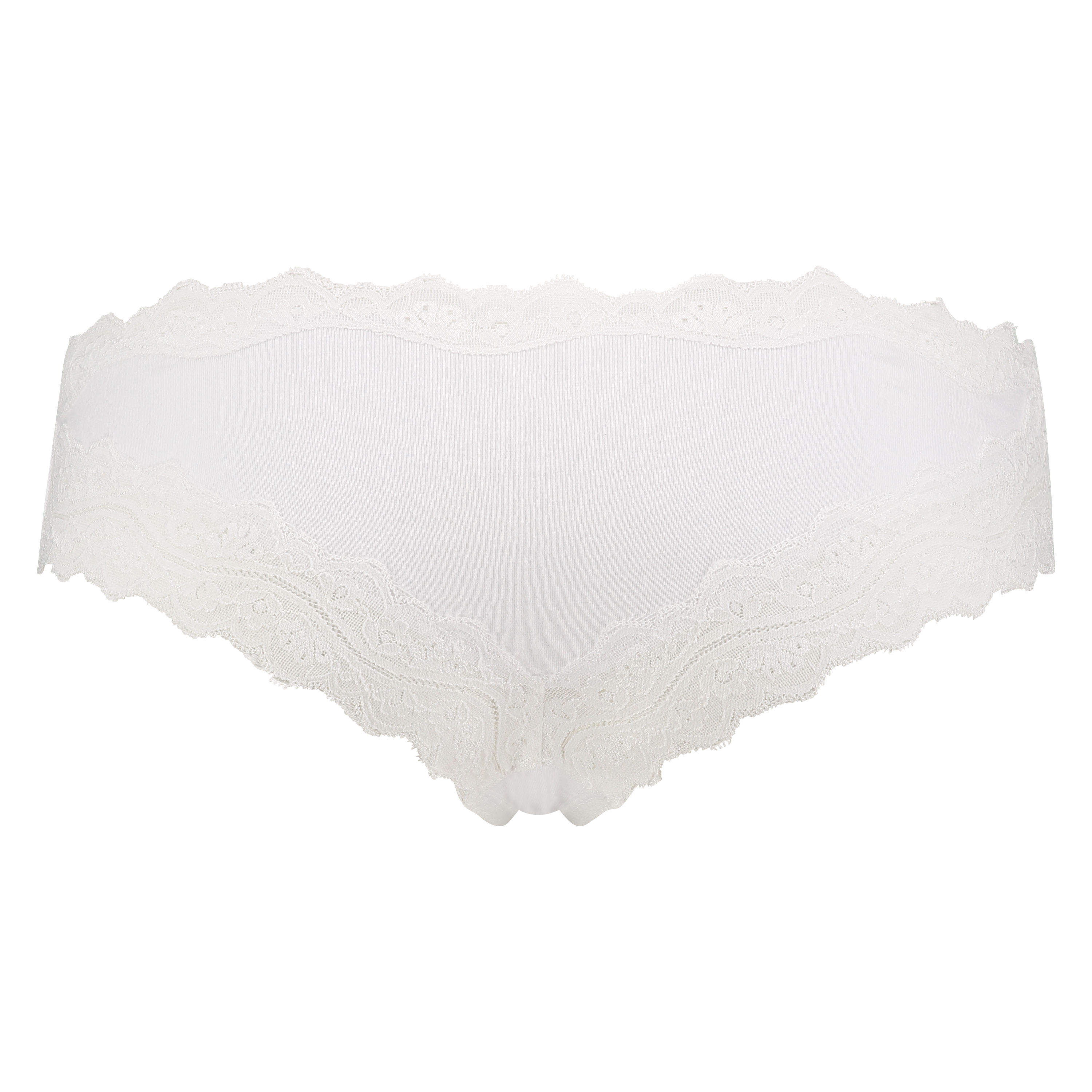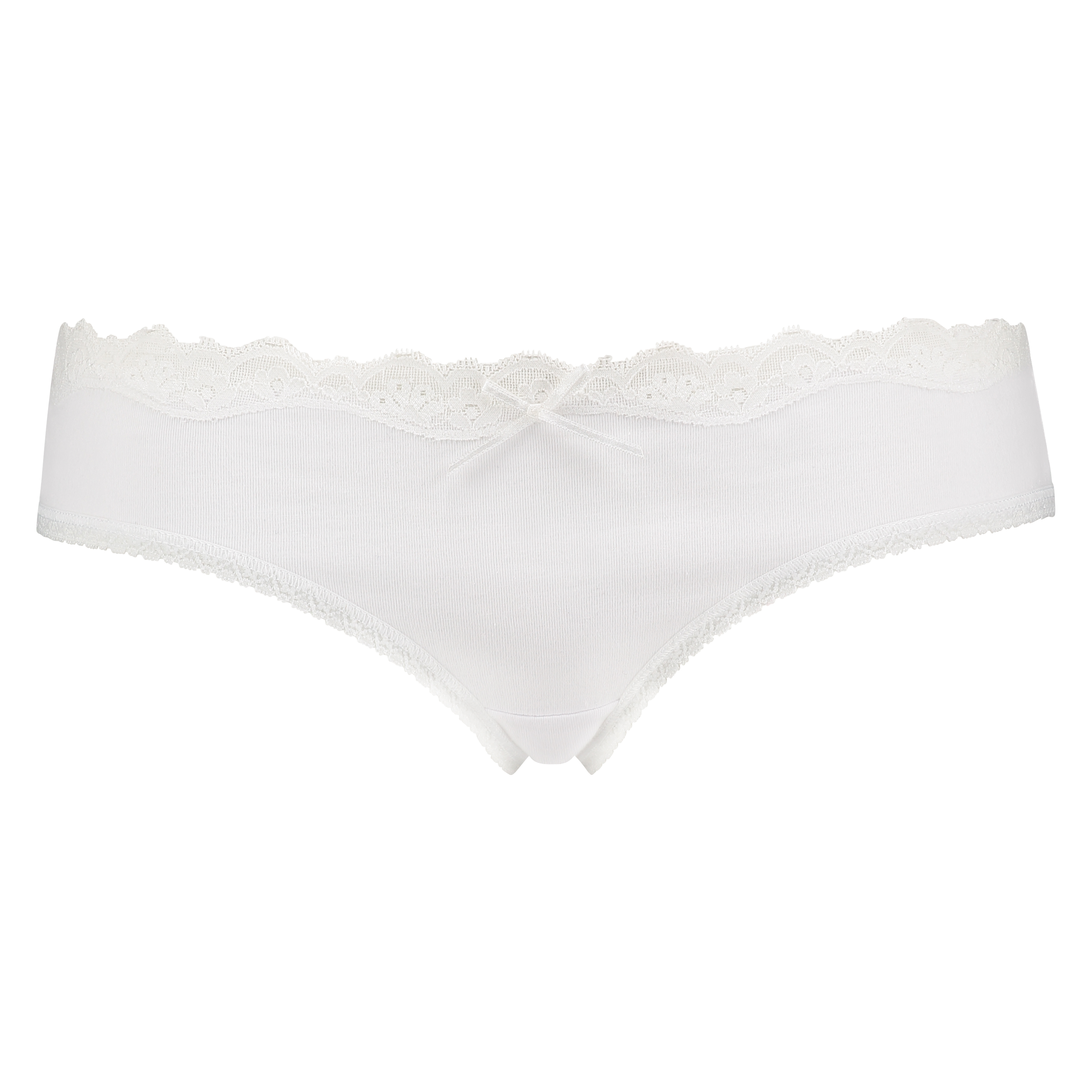 Te brazyliany to idealny dodatek do codziennej garderoby. Mają koronkowe obrębienie i małą kokardkę.