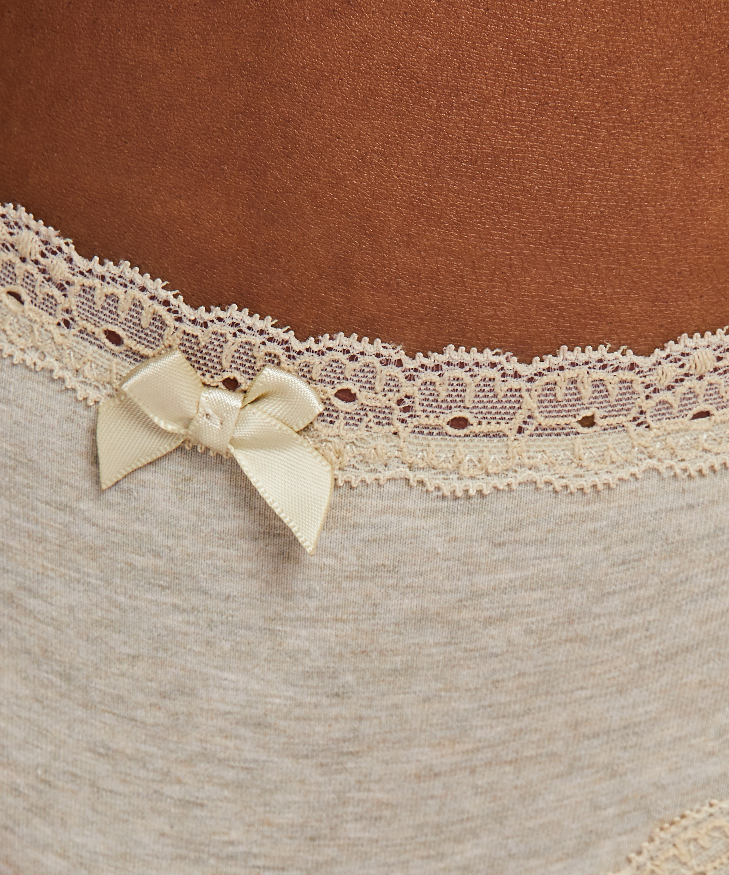 Te brazyliany to idealny dodatek do codziennej garderoby. Mają koronkowe obrębienie i małą kokardkę.