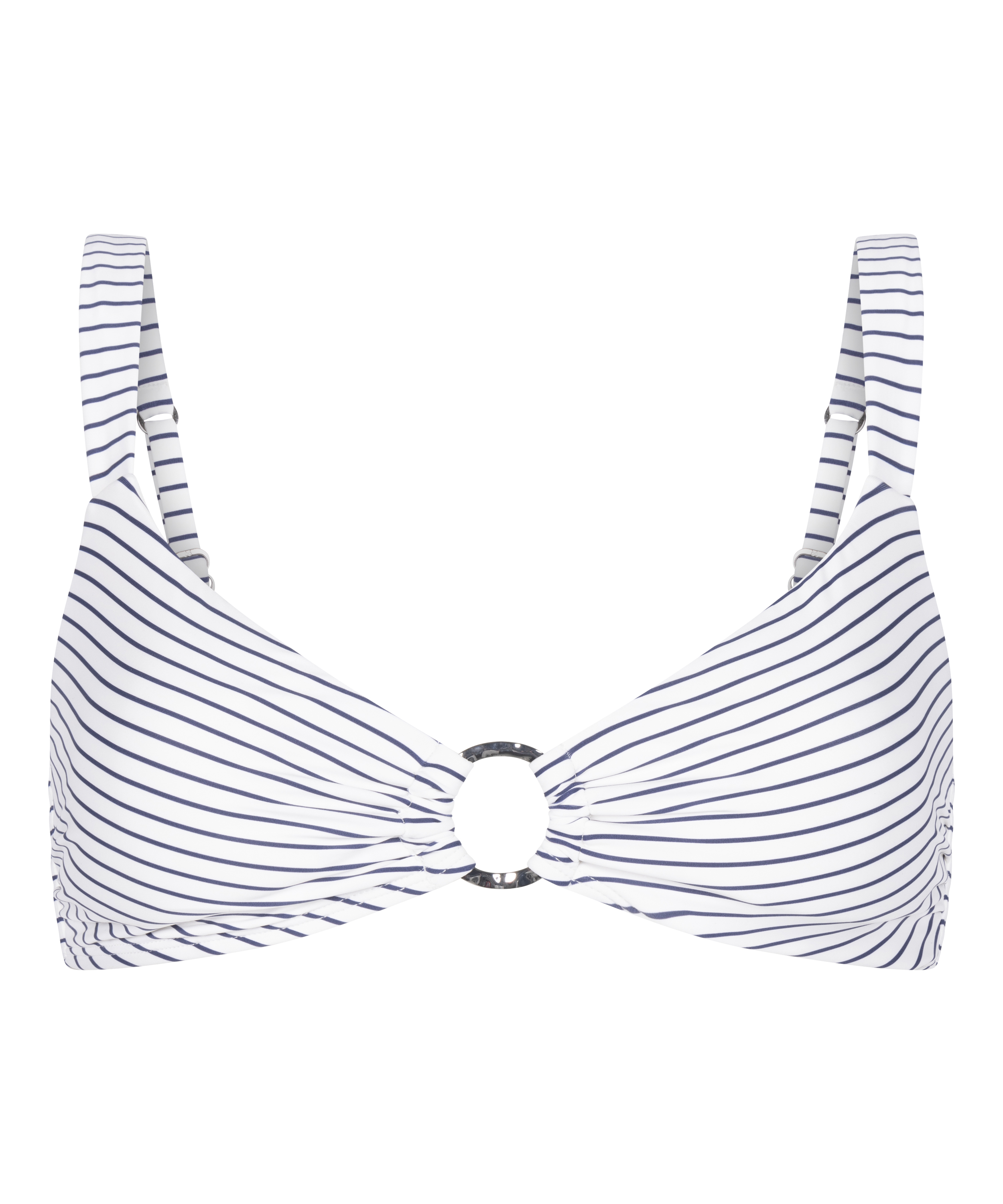 Ten top od bikini jest wyściełany, bez fiszbin i zaprojektowany z myślą o maksymalnym komforcie bez kompromisów w kwestii stylu. Szerokie, regulowane ramiączka zapewniają dodatkowe wsparcie oraz pewne, dopasowane ułożenie. Miękka, trwała tkanina kąpielowa oferuje delikatne modelowanie, zachowując naturalny, swobodny komfort. Idealny do relaksu, pływania lub opalania, łatwo komponuje się z dopasowanymi majtkami, tworząc kompletny look.