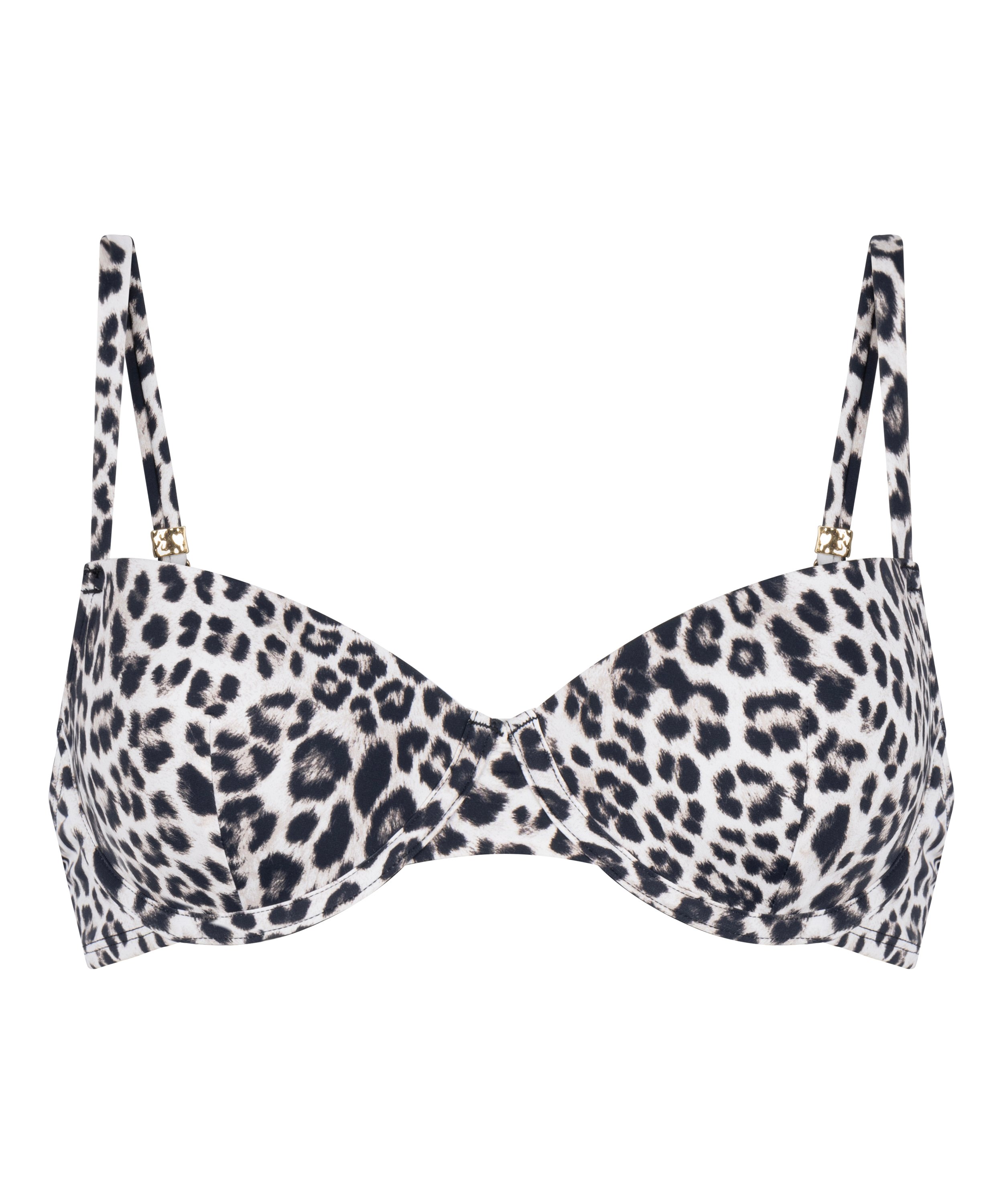 Biustonosz Bikini z Fiszbinami i Wkładkami Leopard - Czarny