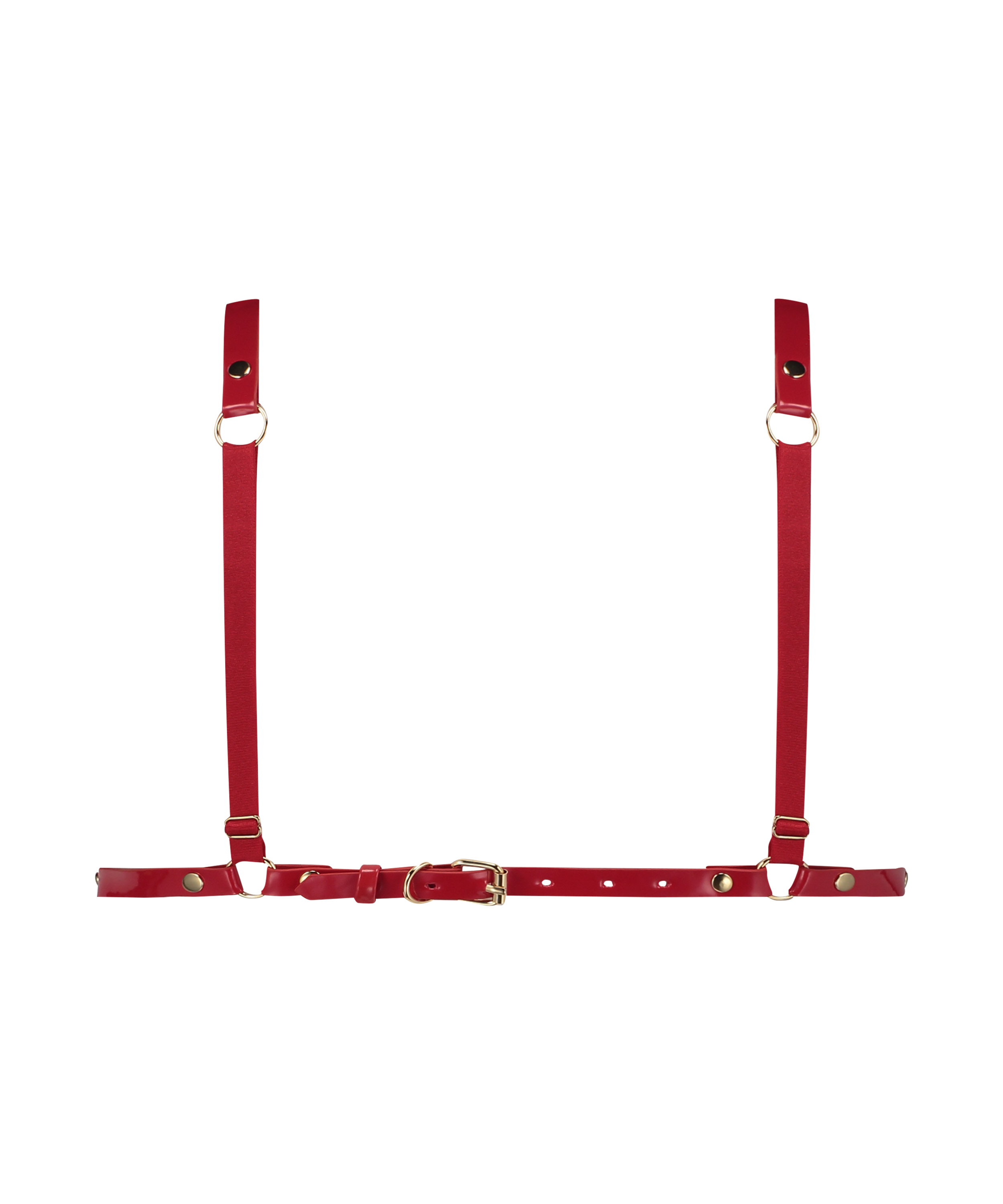 Chcesz przenieść swój strój na wyższy poziom? W takim razie ta braletka ze sztucznej skóry jest idealna dla Ciebie. Wykonany w całości z pasów, z regulowanymi ramiączkami i okuciem. Znajdź pasujący pas do pończoch i skompletuj swój zestaw!