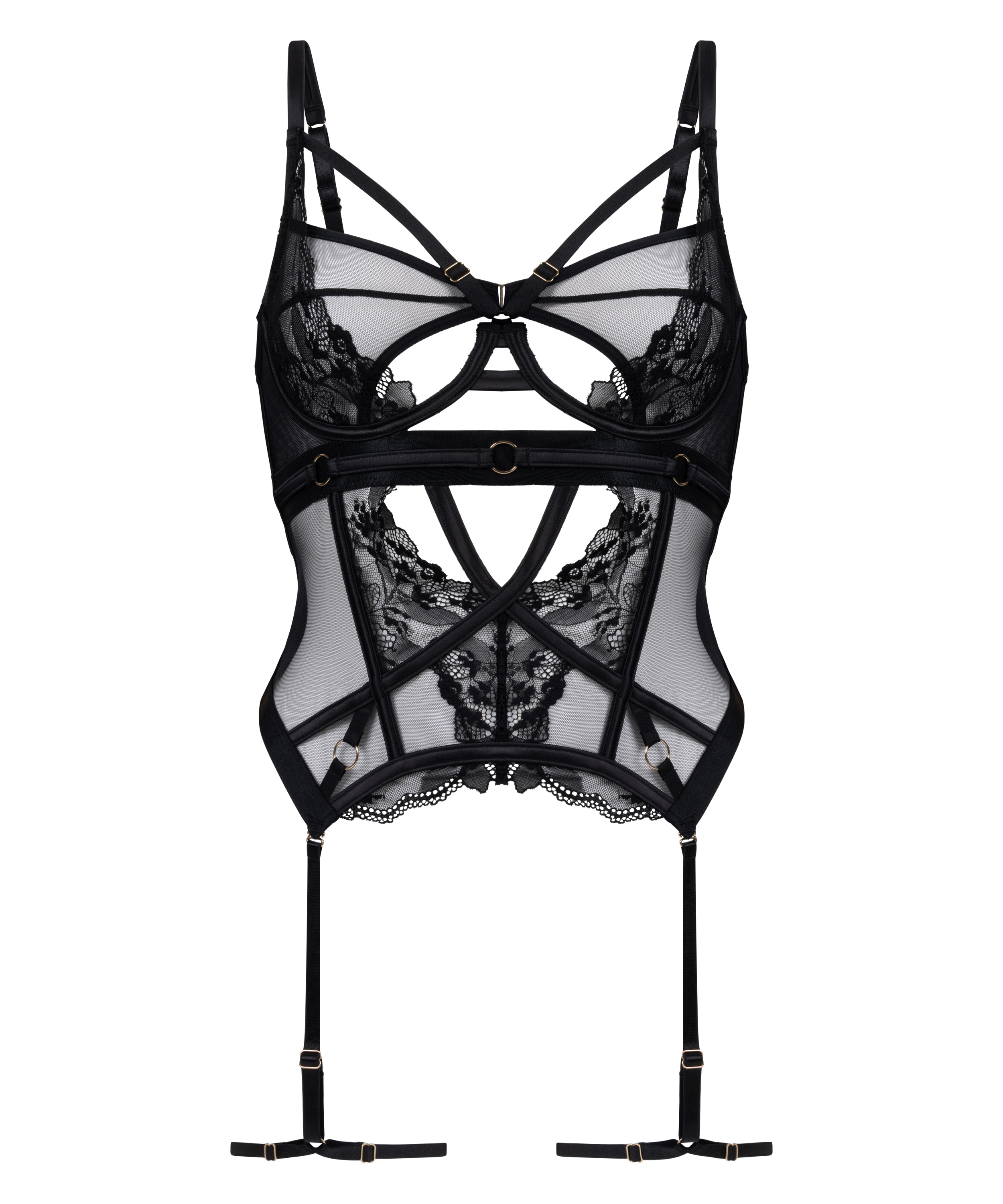 Wyzwól swoją pewność siebie z naszym gorsetem, odważnym i uwodzicielskim elementem garderoby, który na nowo definiuje elegancję. Ten zachwycający projekt łączy w sobie koronkę i siateczkę, tworząc urzekającą, współgrającą fakturę, podkreślającą Twoją sylwetkę. Odważne wycięcia dodają figlarnego charakteru, sprawiając, że gorset ten jest prawdziwym manifestem.