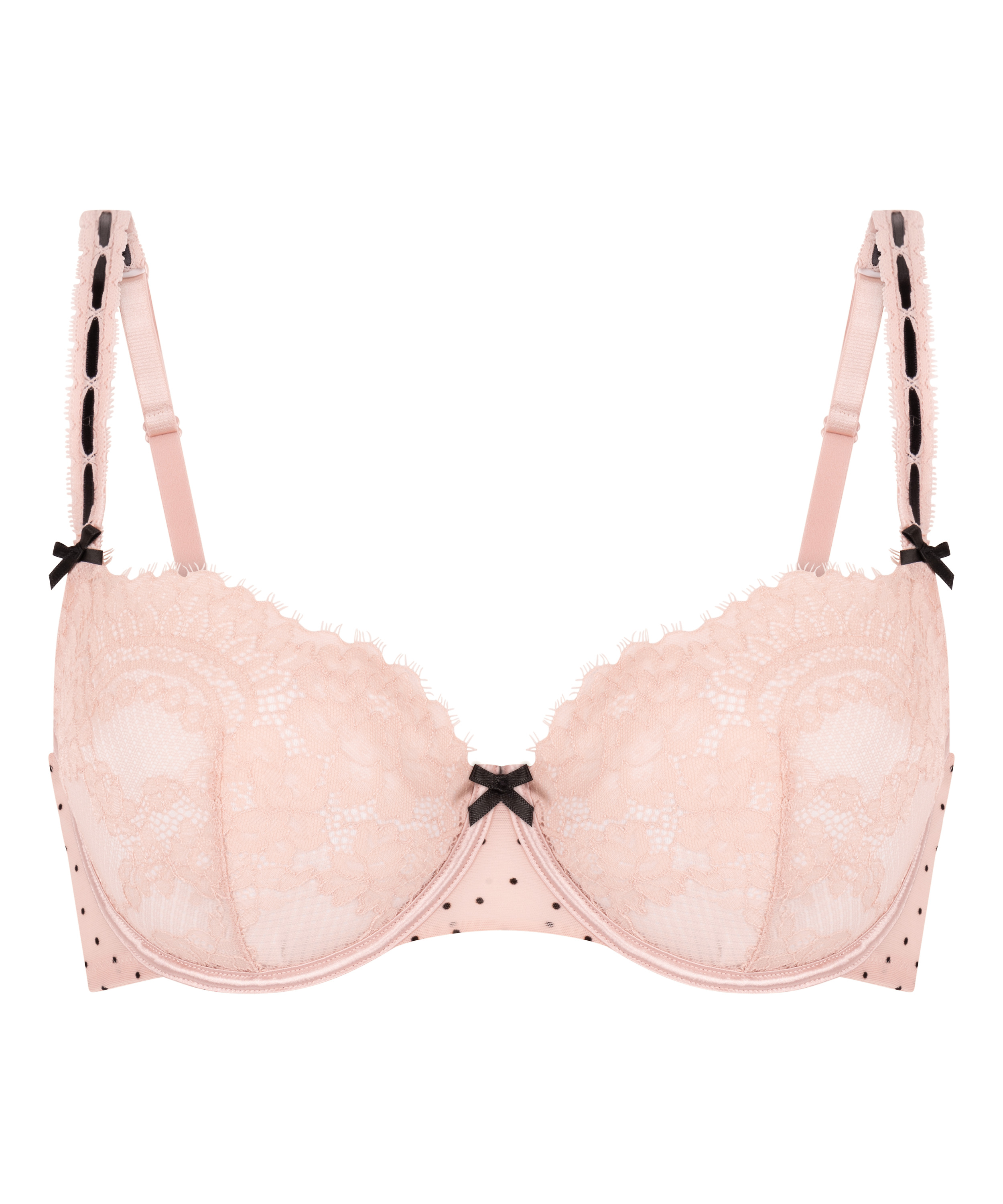 Delikatny i wyrafinowany biustonosz Dorothy zapewnia lekkie wsparcie. Miseczki są ozdobione koronką, dzięki czemu są miękkie w dotyku. Fiszbiny delikatnie unoszą i modelują, a kokardki na ramiączkach i na środku przodu stanowią ostateczny szlif. Połącz z dopasowanymi majtkami, aby stworzyć idealny zestaw.