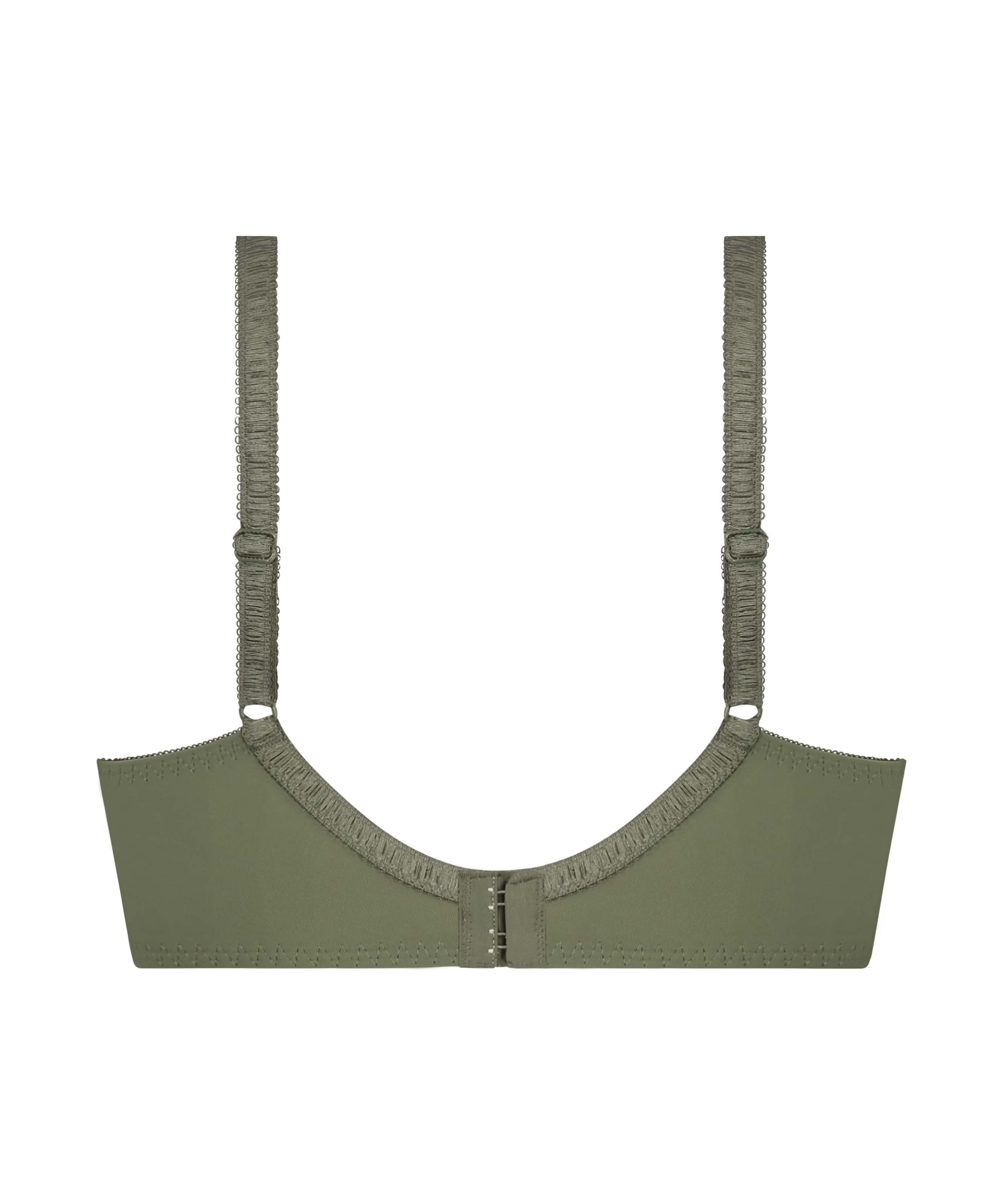 Nieusztywniany biustonosz z fiszbinami, wykonany z nieprześwitującej tkaniny z półprzezroczystą koronką u góry. Miseczki ozdobione są kwiatowym wzorem. W połączeniu z pasującymi figami Diva, otrzymasz kompletny zestaw bielizny.