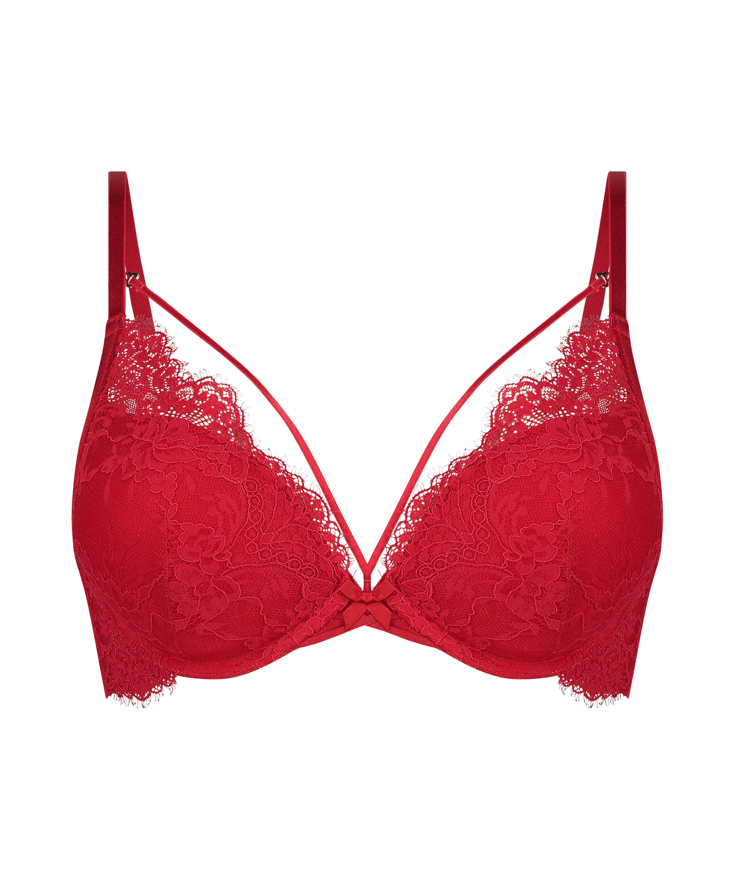 Ten biustonosz będzie Twoim nowym najlepszym przyjacielem! Ten biustonosz powiększa biust, dzięki czemu Twoja miseczka wygląda na większą o 2 rozmiary. Ma piękne koronkowe detale i małą kokardkę z przodu. Biustonosz ma fiszbiny i regulowane ramiączka, które zapewniają dodatkowe wsparcie. Połącz ten biustonosz z majtkami z kompletu.