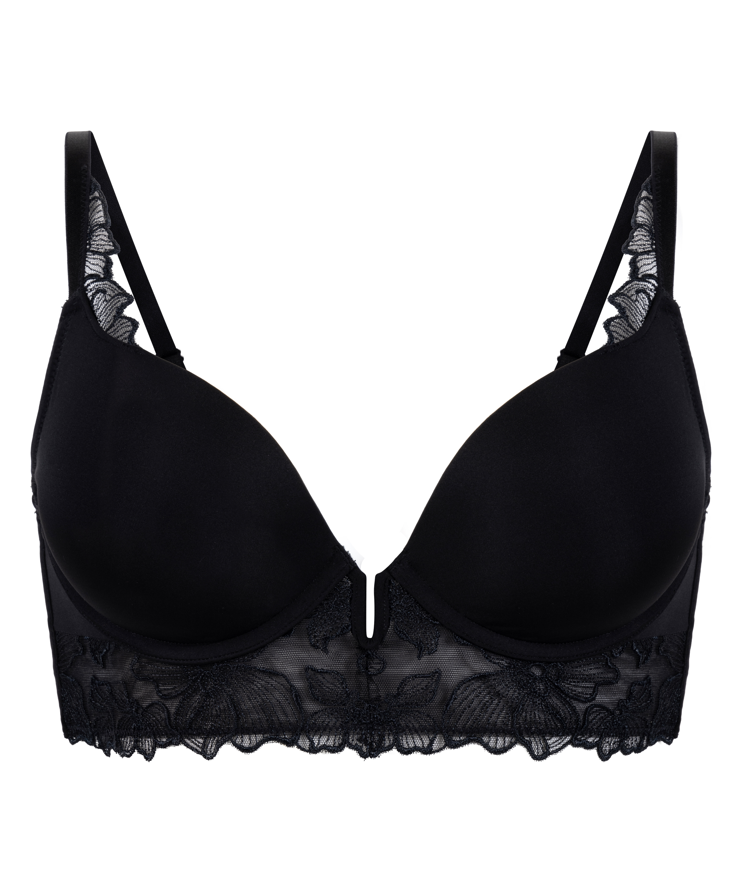 Biustonosz push-up marki Jemima z usztywnianymi fiszbinami i długim rękawem - Czarny