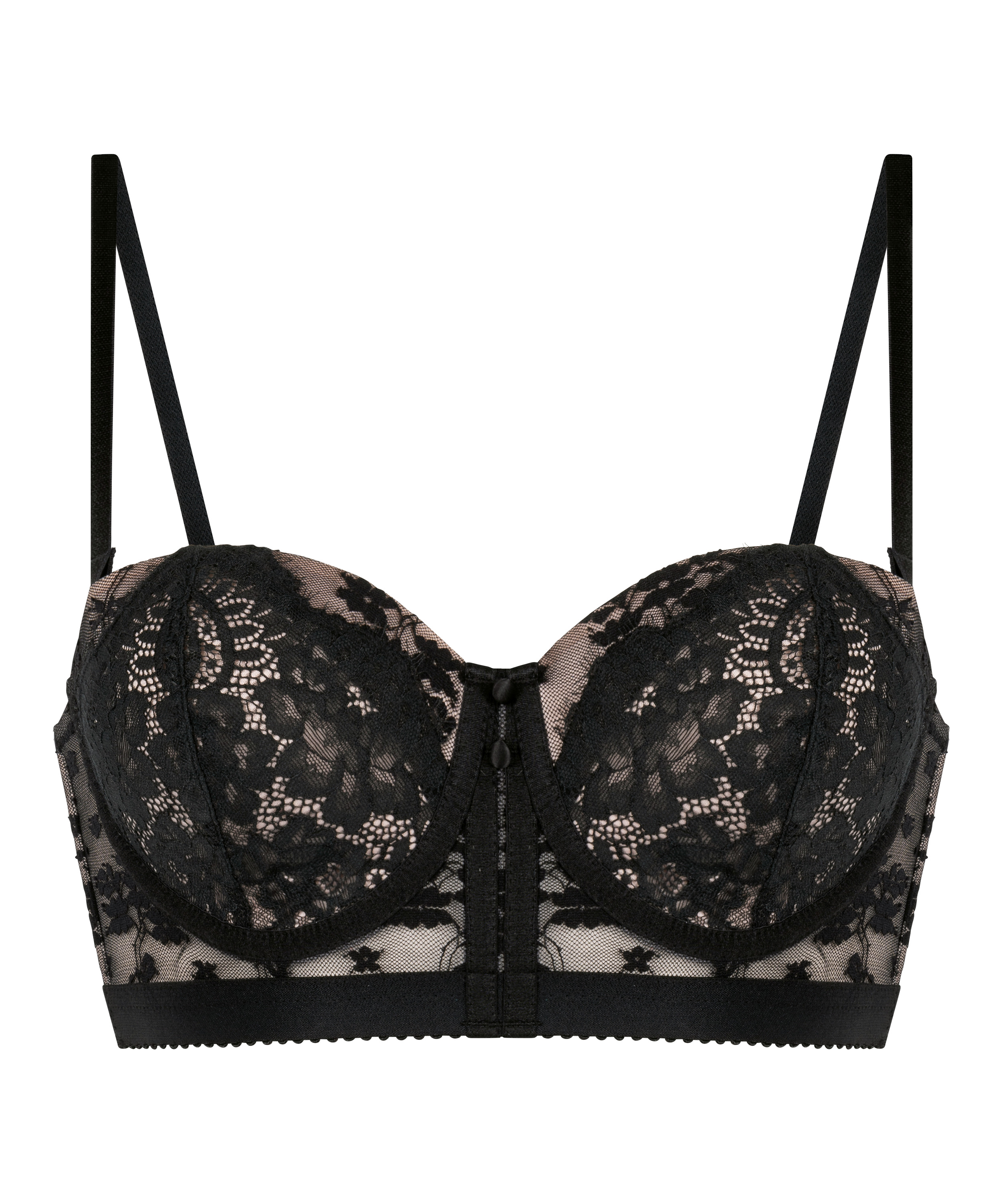 Zaprojektowany, aby podkreślać biust i zapewniać wsparcie, ten usztywniany biustonosz longline stanowi połączenie struktury oraz elegancji. Biustonosz ma usztywniane miseczki, które unoszą i modelują biust, a także wypełnienie gwarantujące wygodę bez kompromisów w kwestii stylu. Wydłużony model wygładza i podkreśla kształty, a delikatne koronkowe detale dodają romantycznego, kobiecego wykończenia. Połącz z dopasowanymi majtkami, aby stworzyć idealny zestaw.