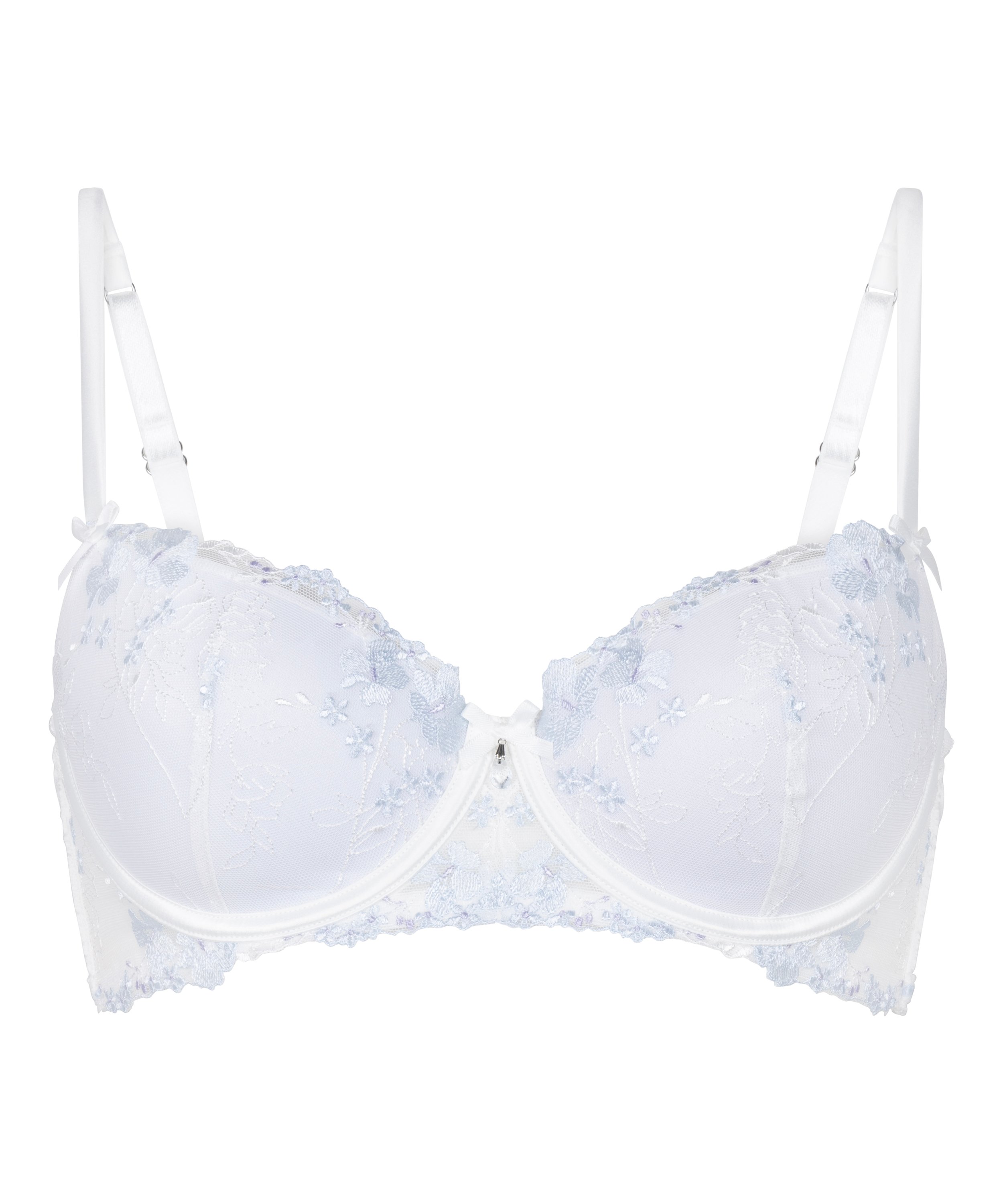 Podkreśl swój urok dzięki temu usztywnianemu biustonoszowi z fiszbinami z zachwycającym kwiatowym haftem. Zaprojektowany, aby podkreślać sylwetkę i zapewniać jej gładkość, łączy w sobie wygodę oraz nieodparty styl. Usztywniane miseczki i delikatna siateczka tworzą odważny i piękny wygląd. Idealny, aby dodać sobie odrobinę pewności siebie w ciągu dnia. Nie może go zabraknąć w Twojej kolekcji romantycznej bielizny.