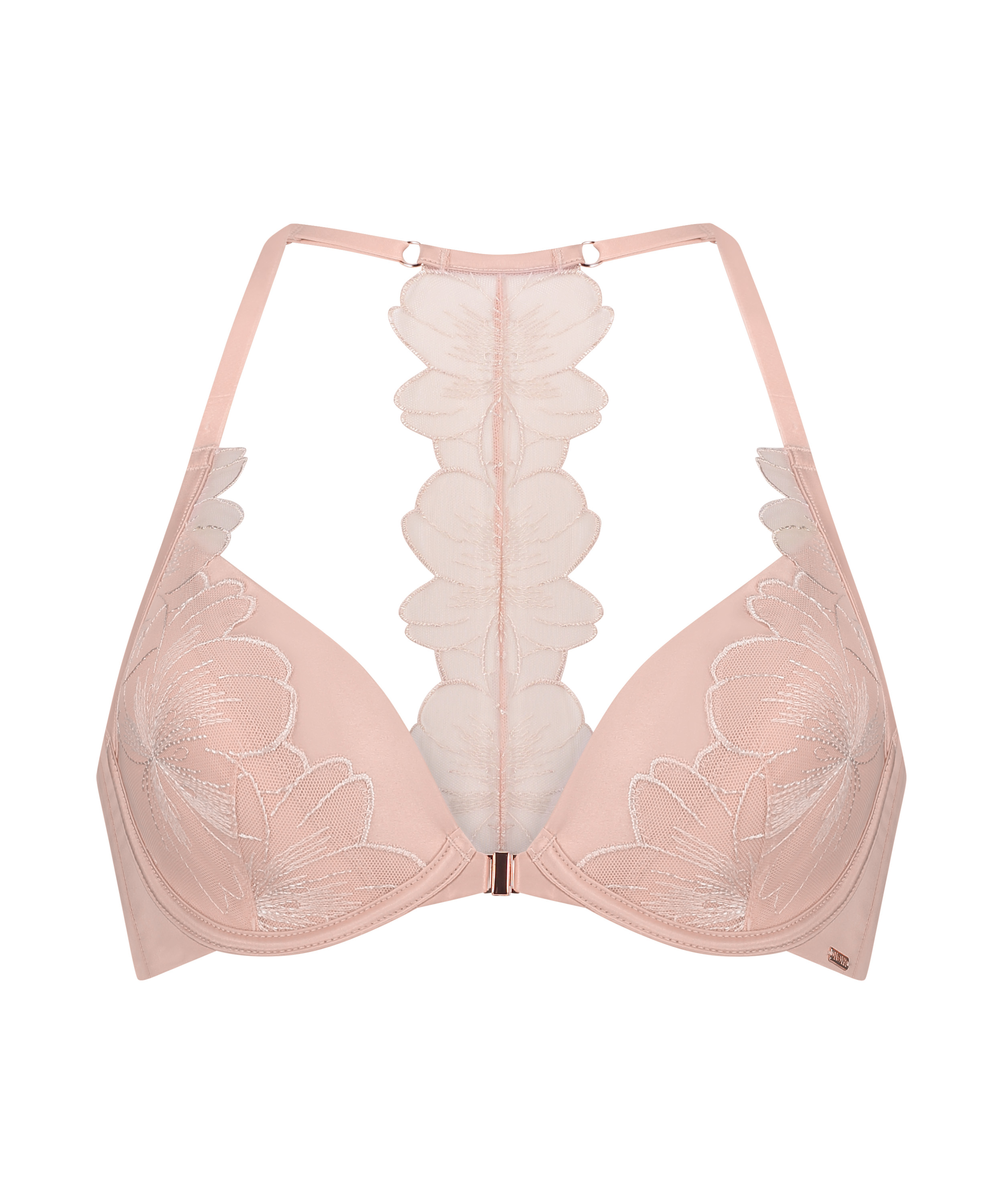 Poczuj się seksownie w tym zniewalającym biustonoszu! Usztywniany biustonosz ma zapięcie z przodu na klips, a miseczki ozdobione są pięknymi haftowanymi kwiatami. Ma regulowane ramiączka i fantastyczne koronkowe detale na plecach. Połącz z dopasowanymi majtkami, aby stworzyć komplet!