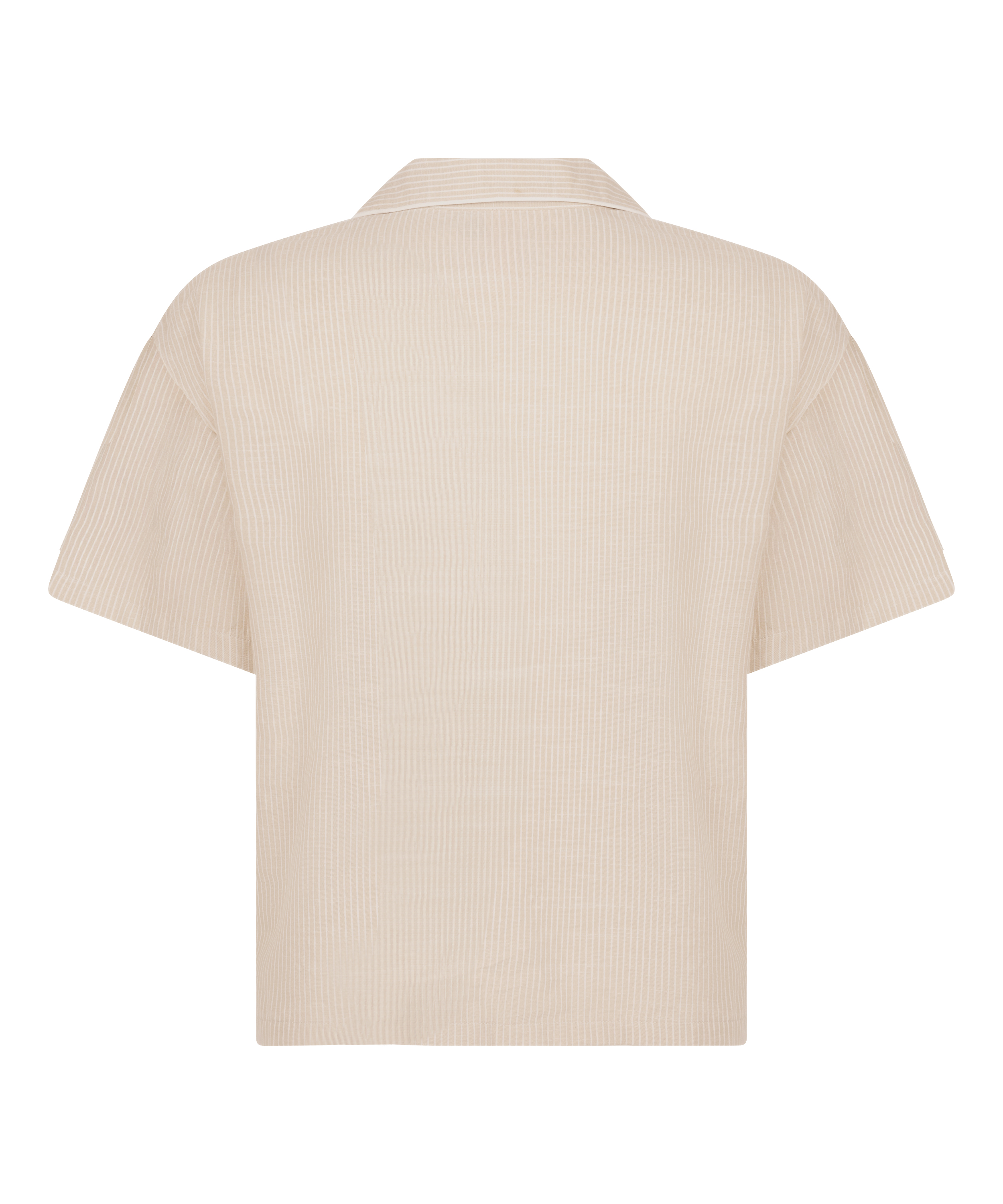 Poczuj chłód i swobodę w tej bluzie od piżamy, niezbędnym elemencie garderoby w ponadczasowym stylu. Ma kołnierzyk, zapięcie na guziki i krótkie rękawy dla swobodnego dopasowania. Połącz z dopasowanymi szortami, aby stworzyć zestaw.