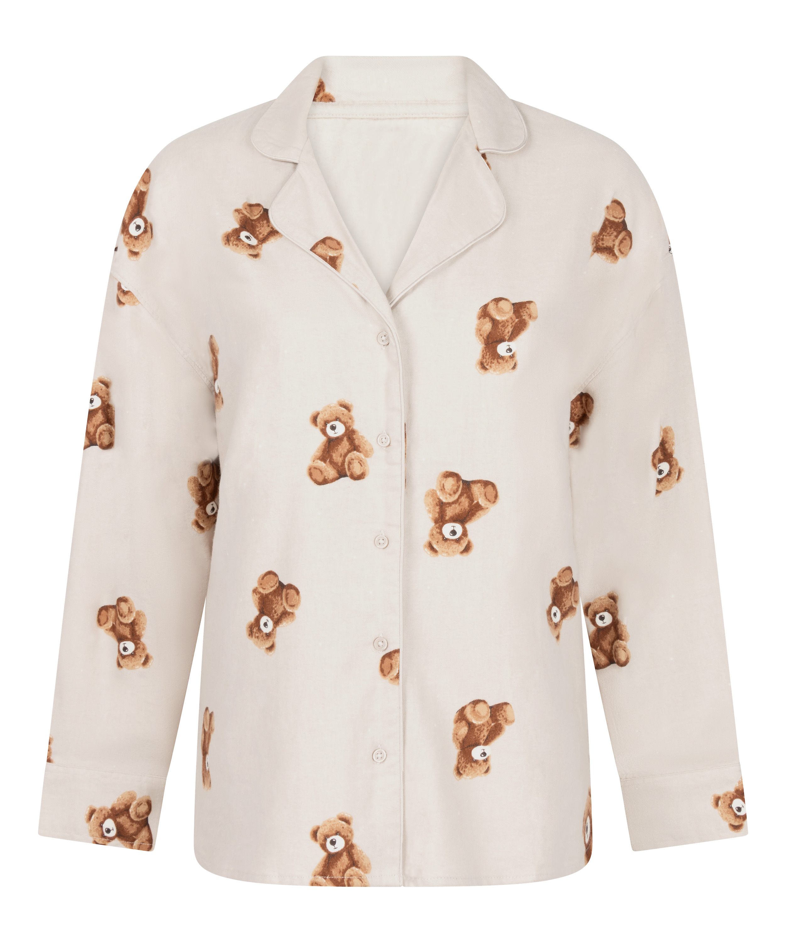 Bluza flanelowa twillowa ze wzorem misia - Beżowy