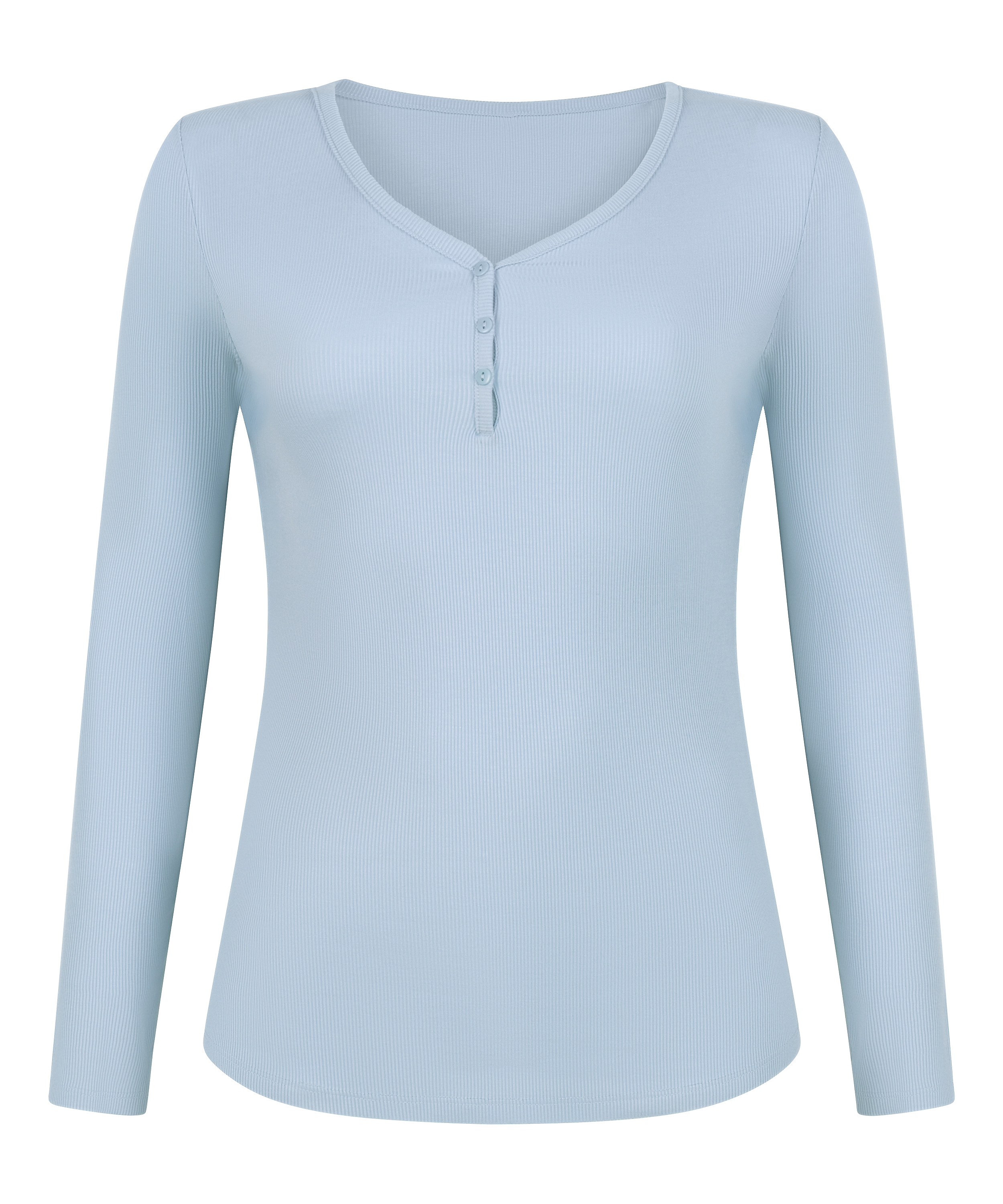 Bluza piżamowa Henley z długim rękawem - Niebieski