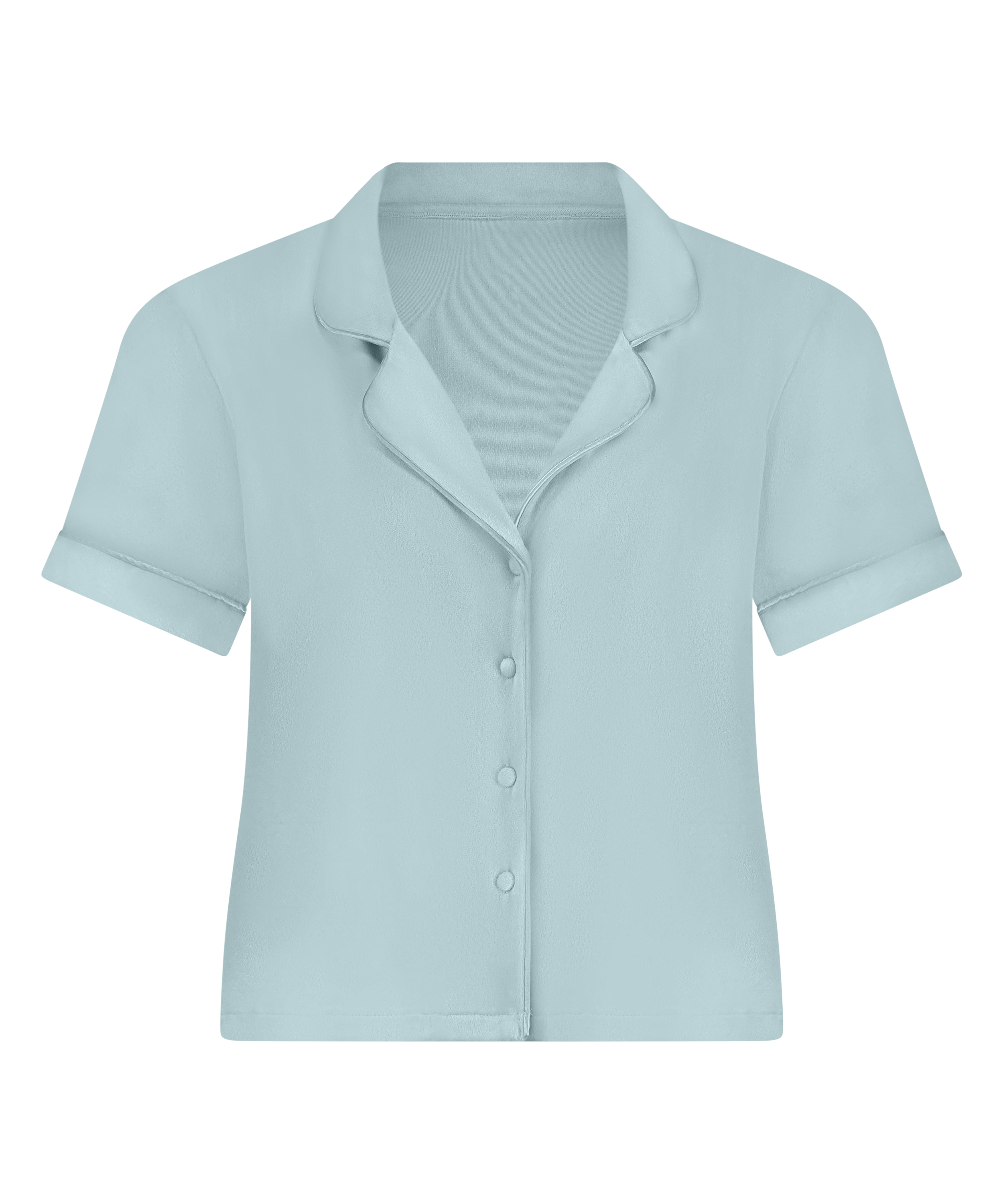 Pora na wygodę w tej welurowej bluzie! Z dekoltem w serek i uroczymi guzikami z przodu. Połącz z dopasowanymi szortami, aby stworzyć komplet!
