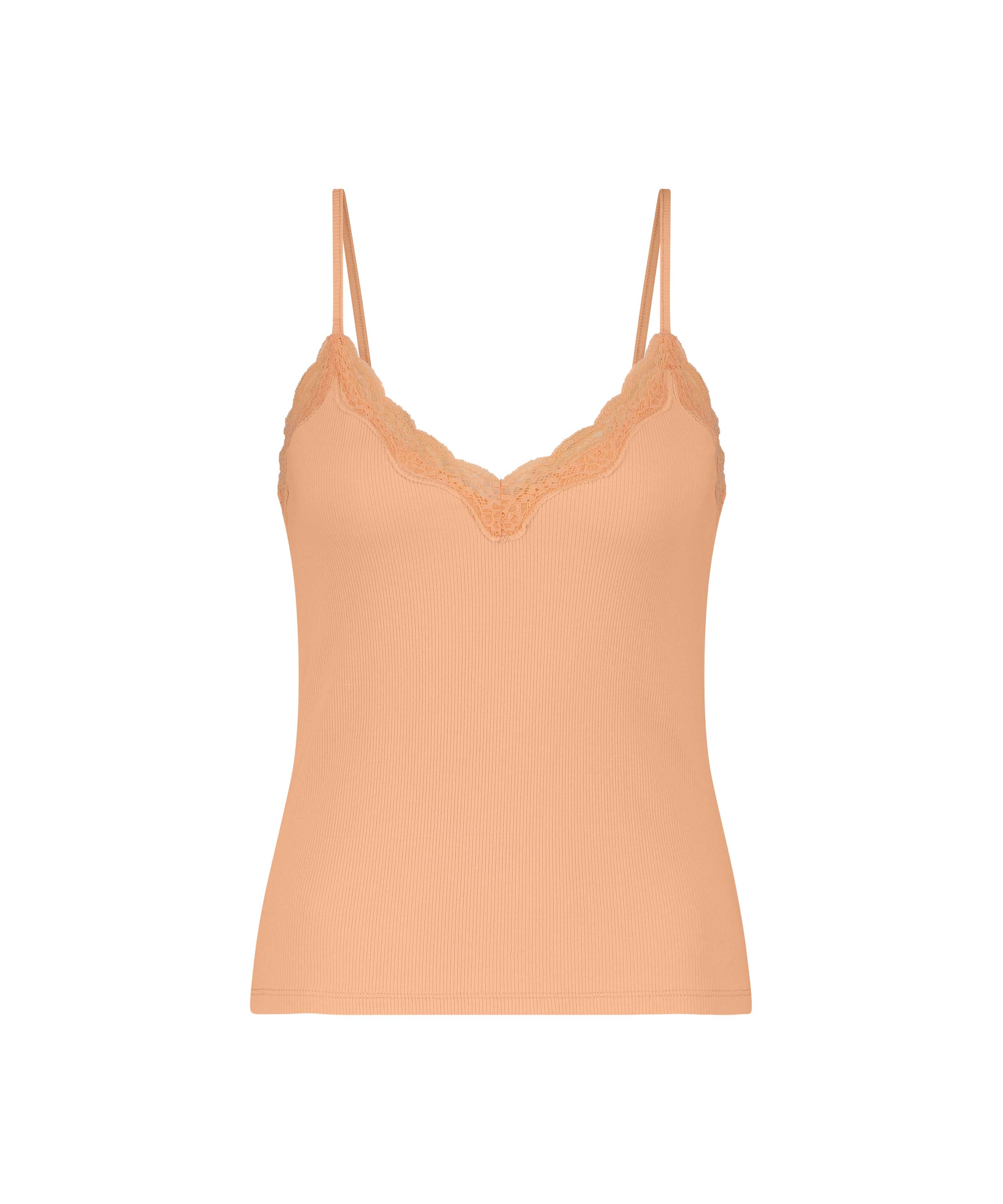 Jeśli szukasz ładnego topu o ładnym kroju, przyjrzyj się temu prążkowanemu topowi z koronką wokół okrągłego dekoltu.