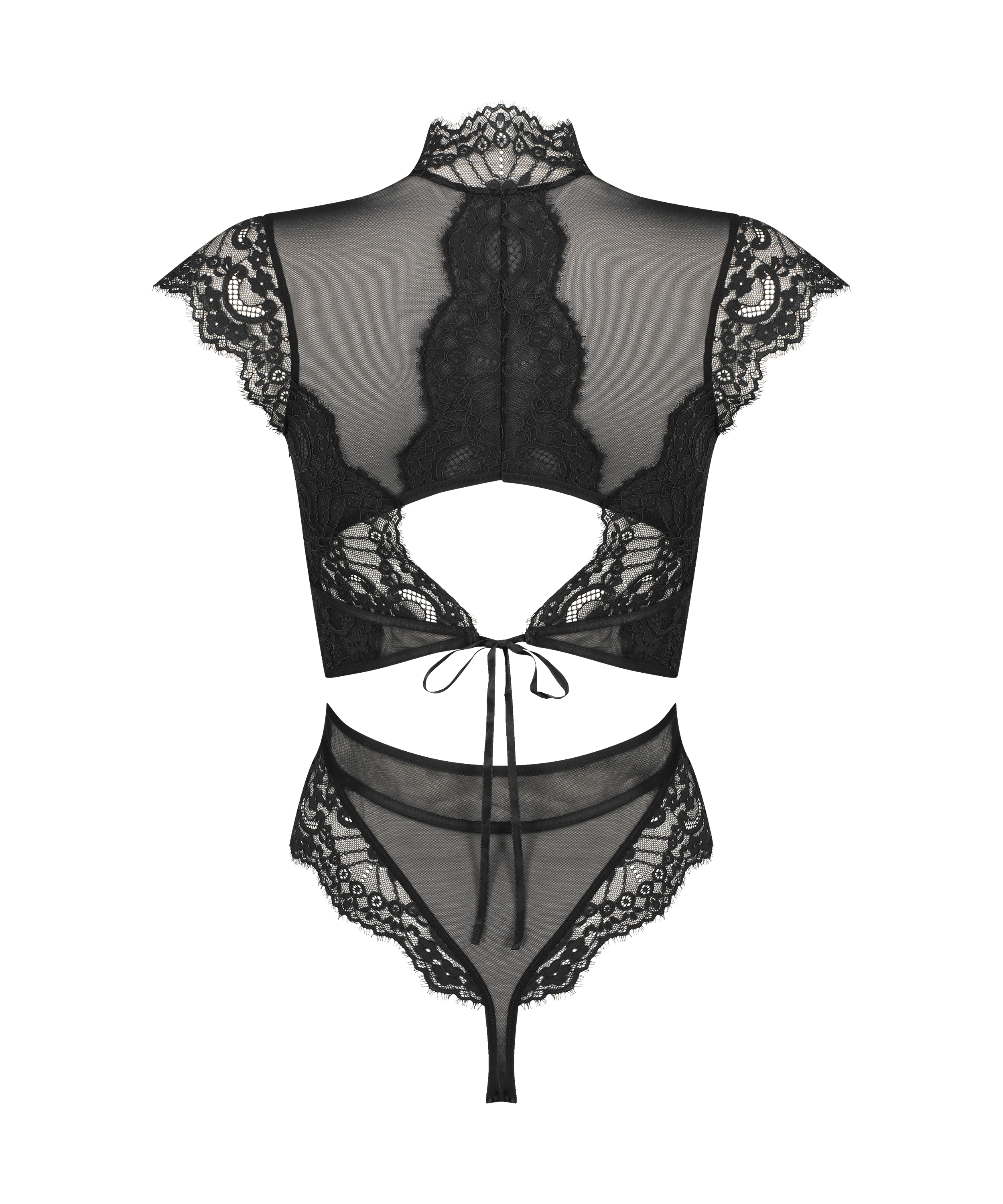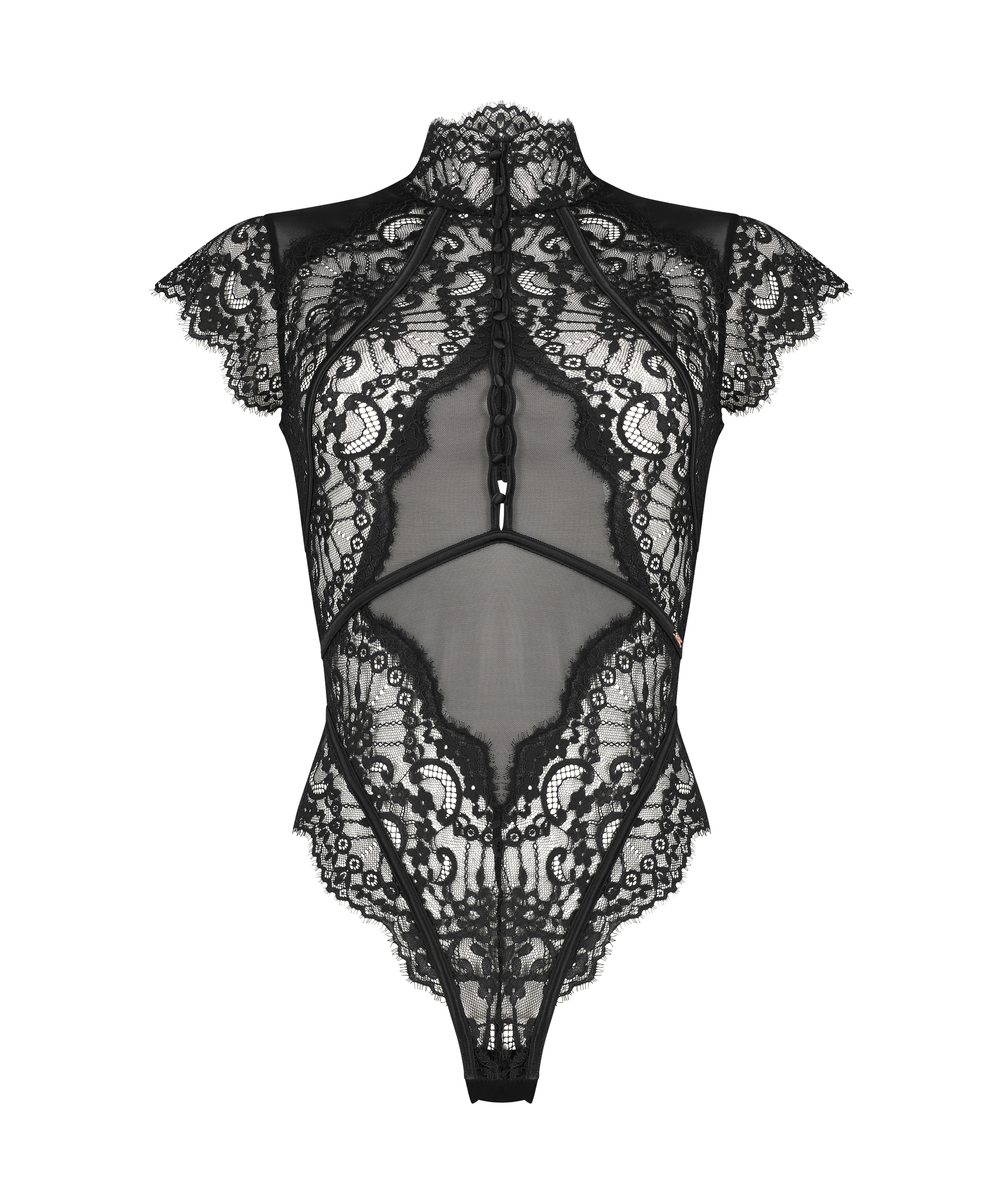 Poczuj się seksownie w tym fantastyczny body z krótkimi rękawkami i odkrytymi plecami. To body ma piękne detale w postaci guzików z przodu i jest wykonane prawie w całości z koronki.