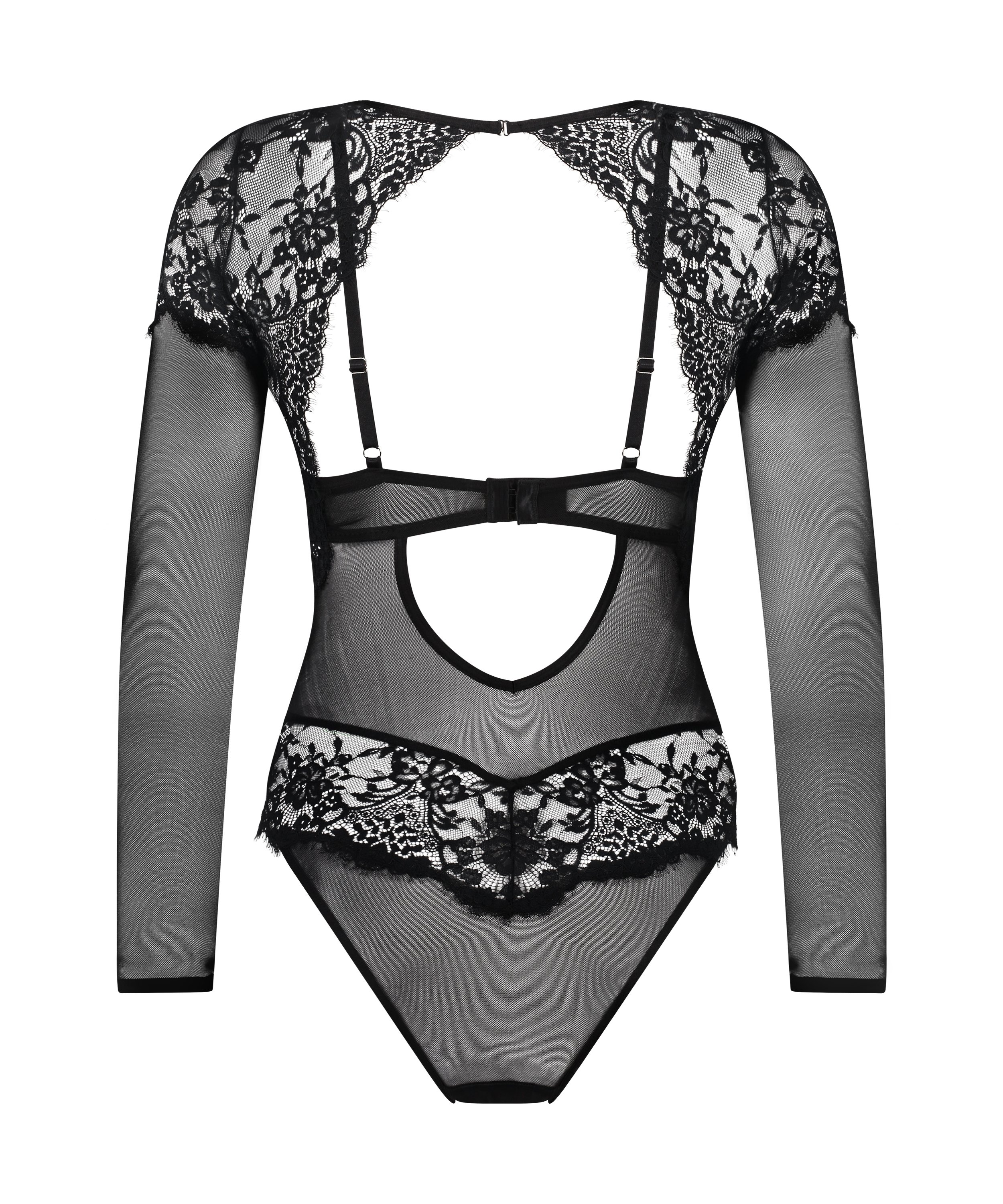 Idealnie uniwersalne do codziennych stylizacji! Body Belli jest delikatne i elegancko ozdobione koronką i siateczkową tkaniną. Długie rękawy ułatwiają noszenie dżinsów lub stylizację z ulubioną marynarką. Dzięki wyściełanym miseczkom zapewniającym dodatkowe wsparcie, nie możesz nie podobać się w tym body!