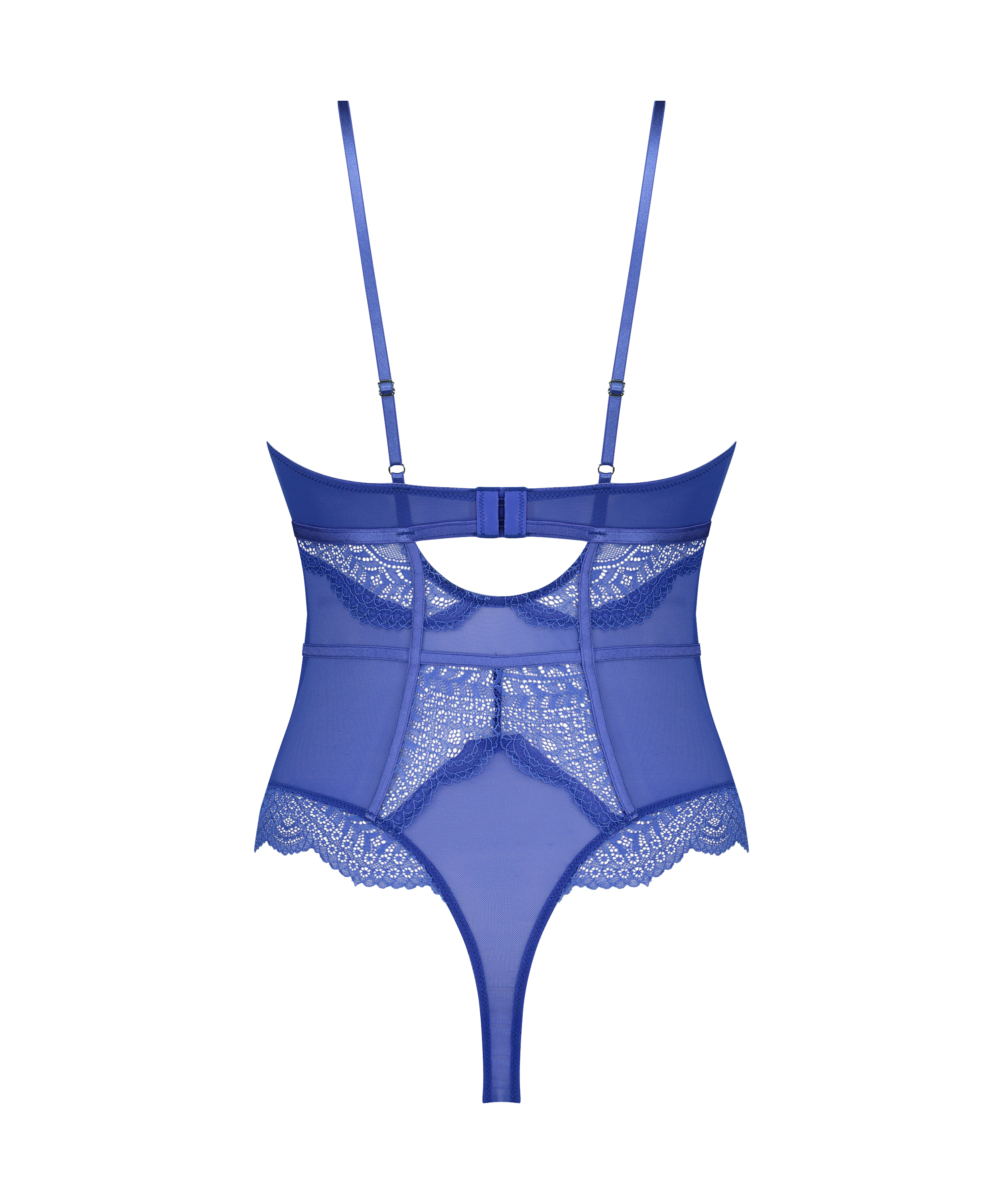 Poczuj się wspaniale w tym nieusztywnionym body! Półprzezroczysty model z dużą ilością zdobień z koronki. Z przodu i z tyłu znajdują się urocze wycięcia i seksowne paski. Połącz to z kimonem, aby dopełnić stylizację!