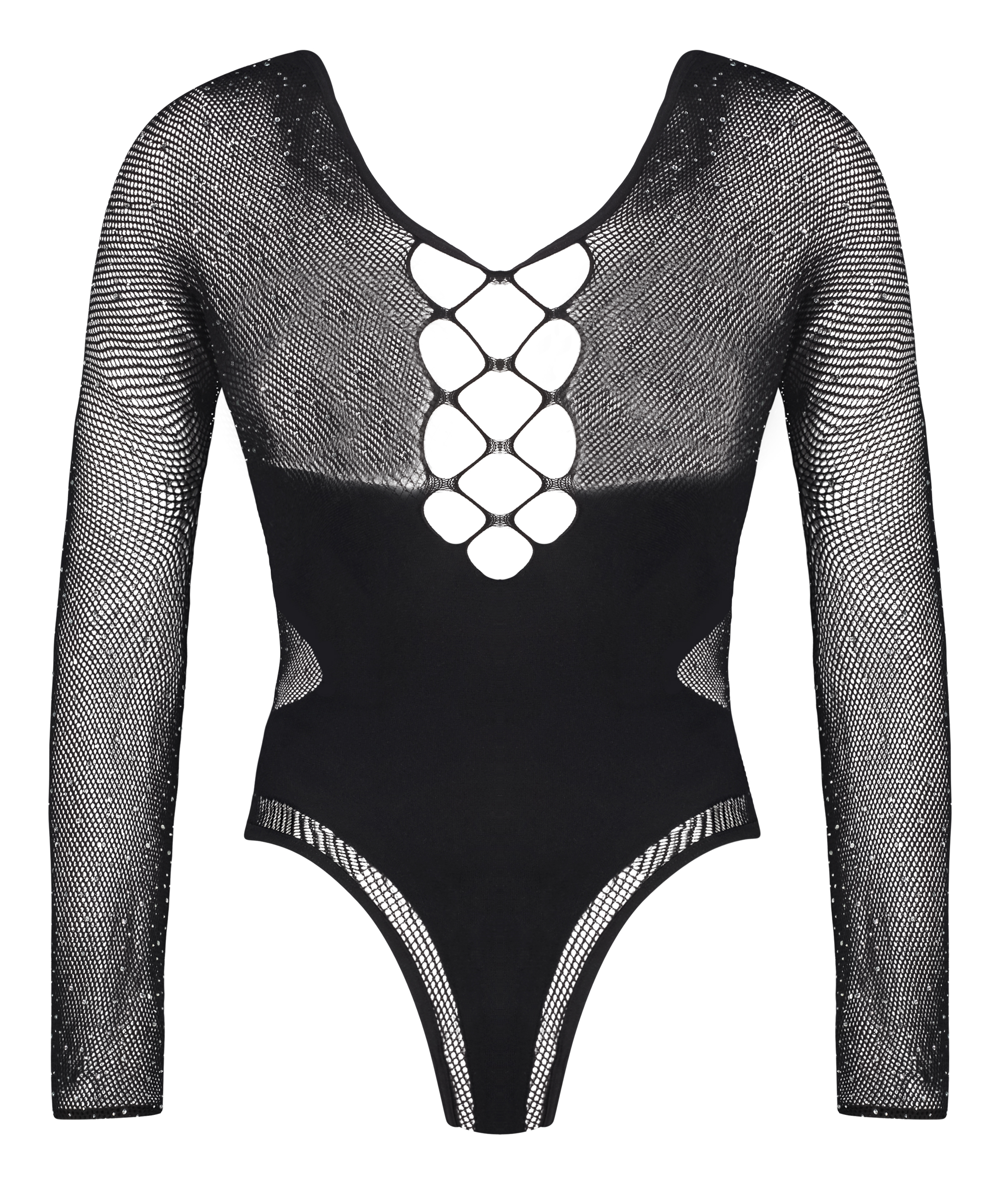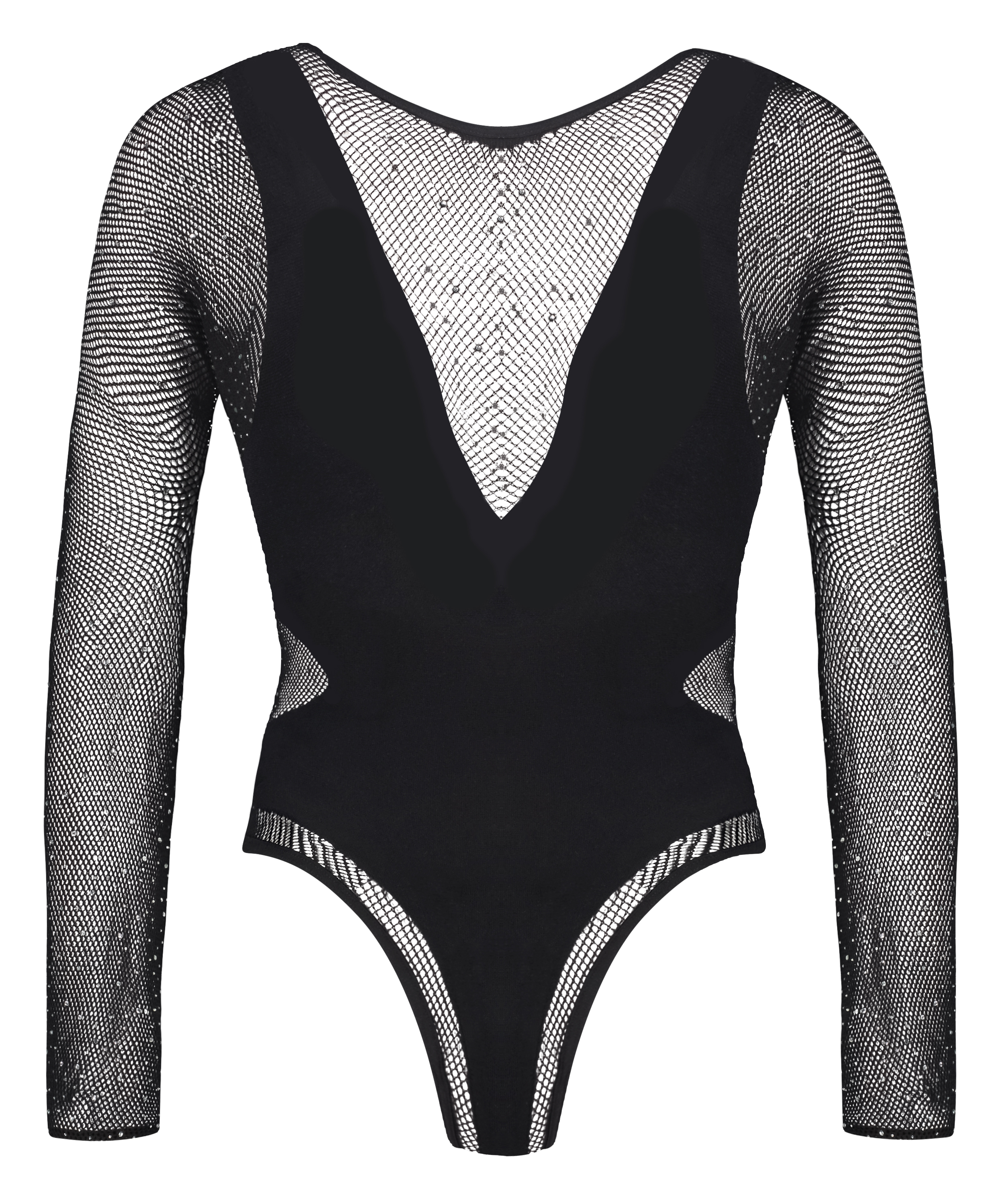 Z mieniącymi się akcentami z cyrkonii i eleganckimi długimi rękawami, ta body dodaje glamour każdej stylizacji. Dół typu string zapewnia bezszwowy wygląd pod ubraniem, idealny do warstwowych stylizacji. To przyciągające uwagę, podnoszące pewność siebie ubranie to wszystko o odważnym stylu i doskonałym dopasowaniu – czuje się tak dobrze, jak wygląda!