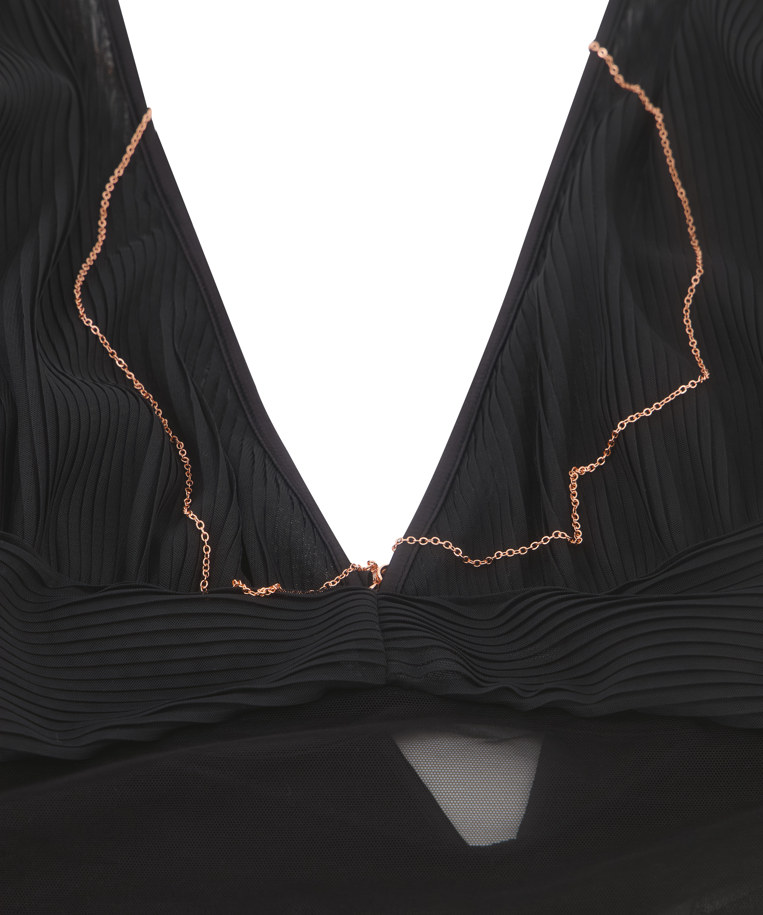 Zanurz się w zmysłowej elegancji dzięki naszym body Simona! Idealnie wycięte, ozdobione odpinanym łańcuszkiem, emanują wyrafinowaniem i powabem. Głęboki dekolt w kształcie litery V i wygodny klips do zapinania dodają jeszcze więcej uroku. Uzupełnij swoją kolekcję bielizny o nasze uwodzicielskie i luksusowe body.