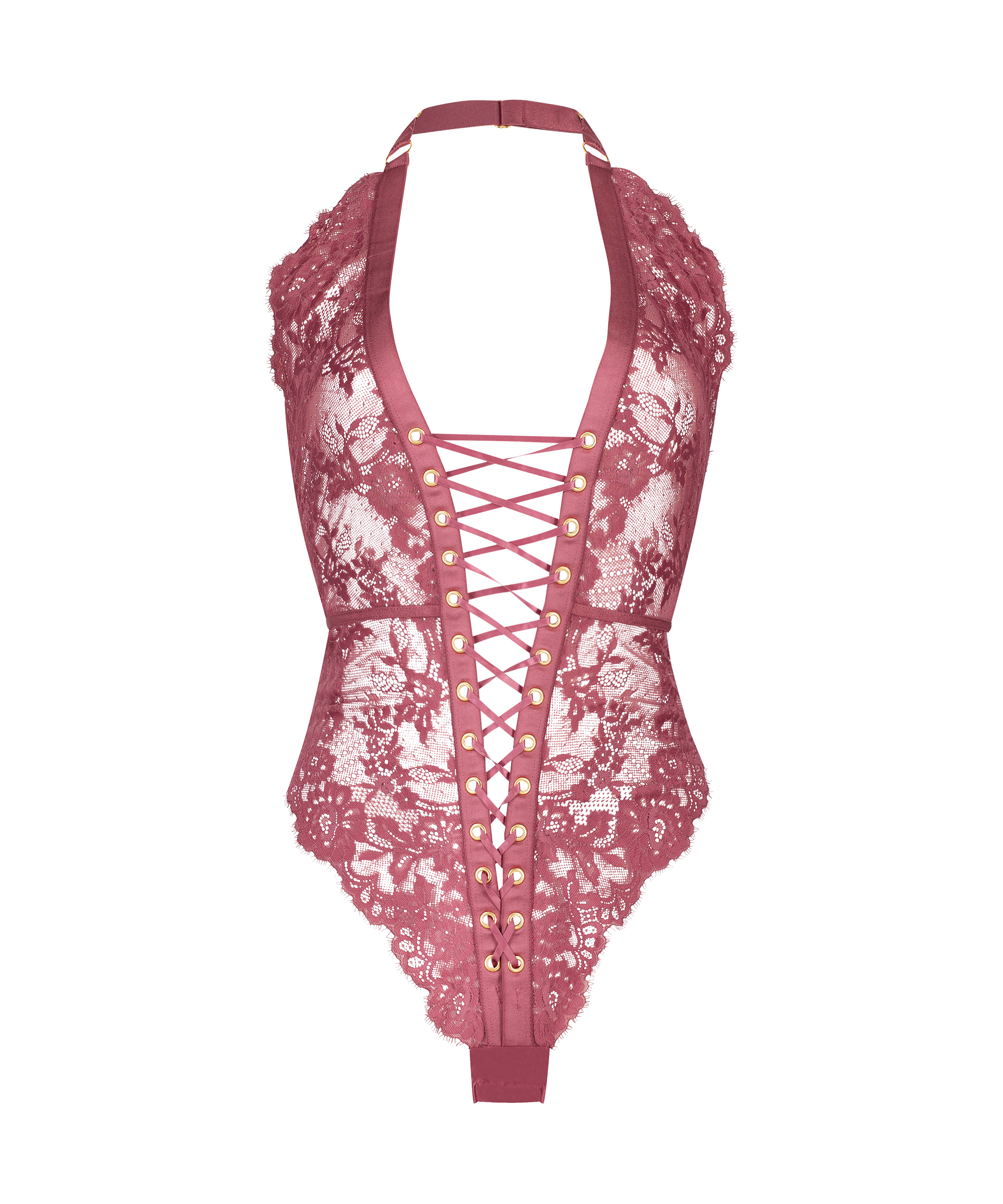 W tym body będziesz wyglądać zniewalająco! Ma dekolt w kształcie litery V, ozdobiony paskami. Wykonane z całości z koronki. To body jest częścią naszej kolekcji Private!