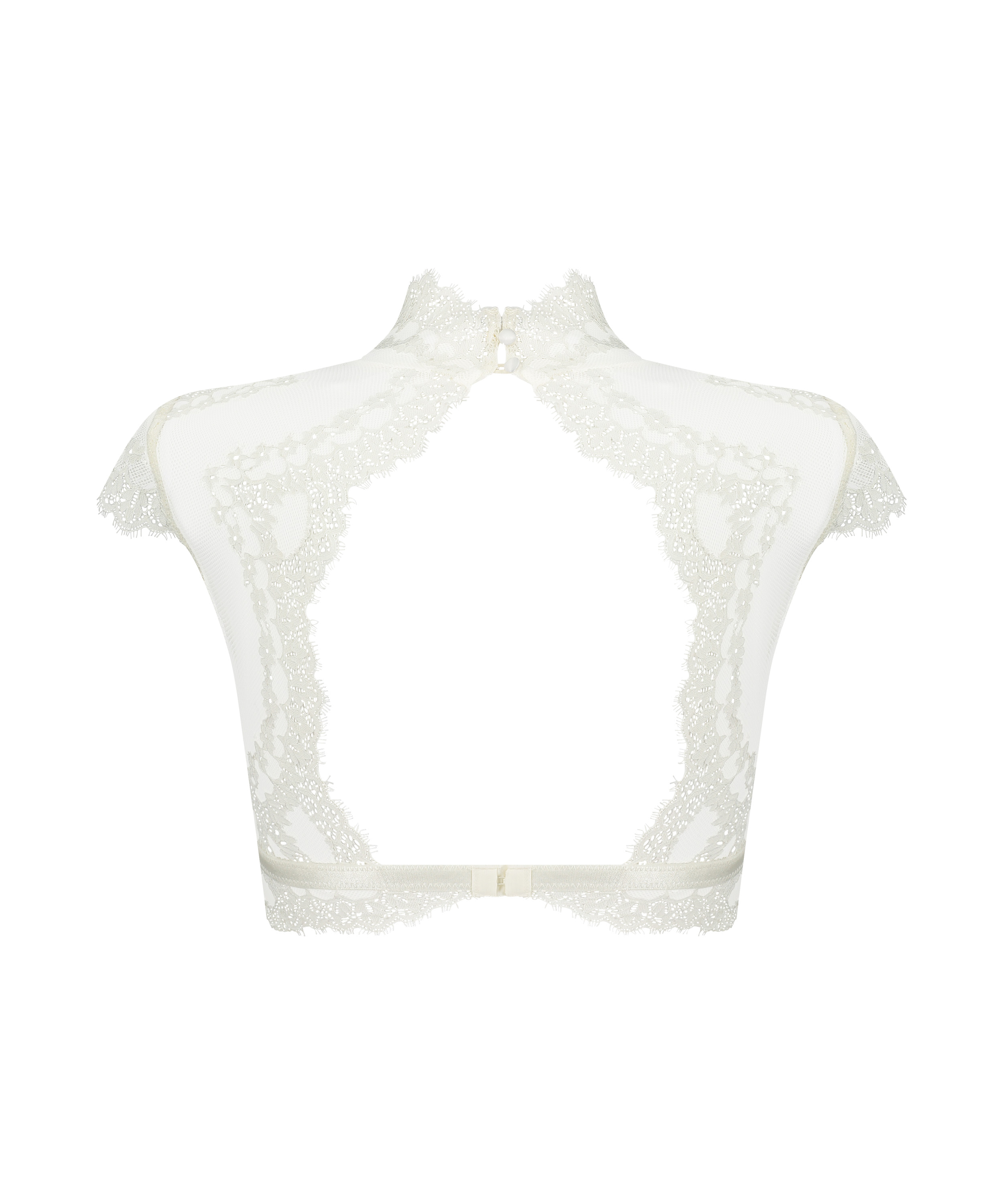Poczuj się sexy w tej braletce! Seksowna, wykonana z koronki, z krótkimi rękawakami, odkrytymi plecami i satynowymi guziczkami z tyłu kołnierzyka. Idealne także na wieczorne wyjście!