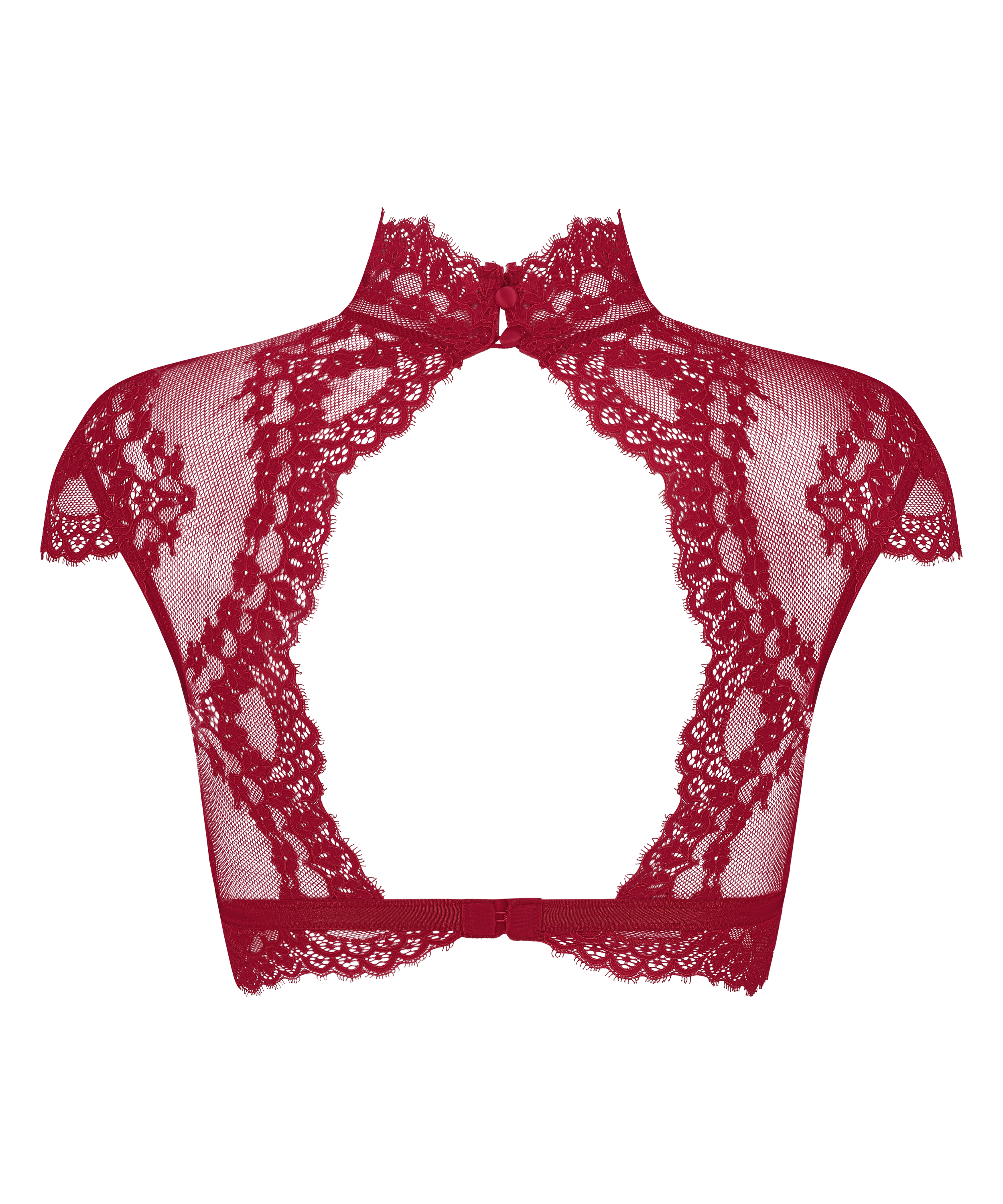 Poczuj się sexy w tej braletce! Seksowna, wykonana z koronki, z krótkimi rękawakami, odkrytymi plecami i satynowymi guziczkami z tyłu kołnierzyka. Idealne także na wieczorne wyjście!
