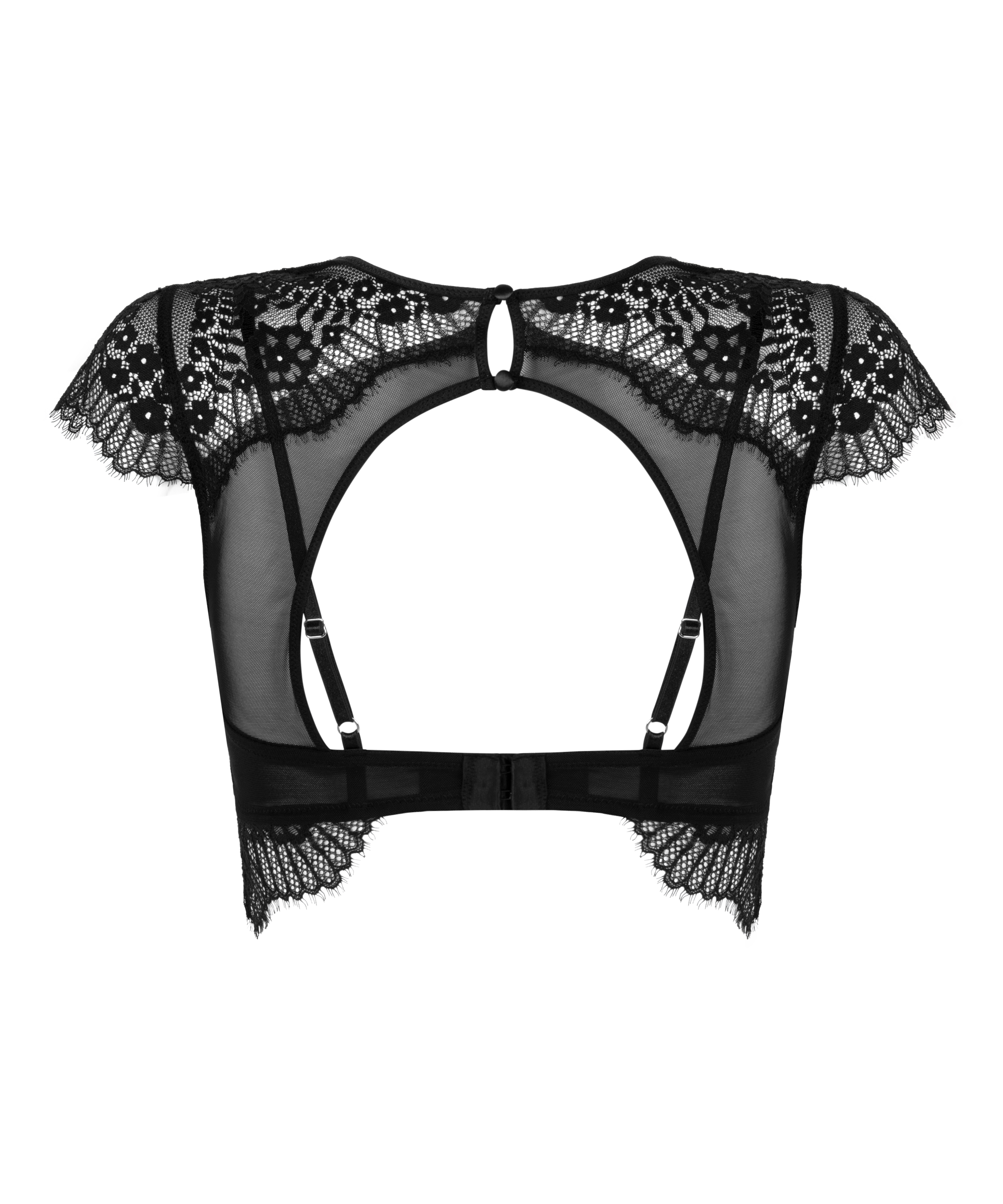 Poczuj się sexy w tej braletce! Seksowna, wykonana z koronki, z krótkimi rękawakami, odkrytymi plecami i satynowymi guziczkami z tyłu kołnierzyka. Idealne także na wieczorne wyjście!
