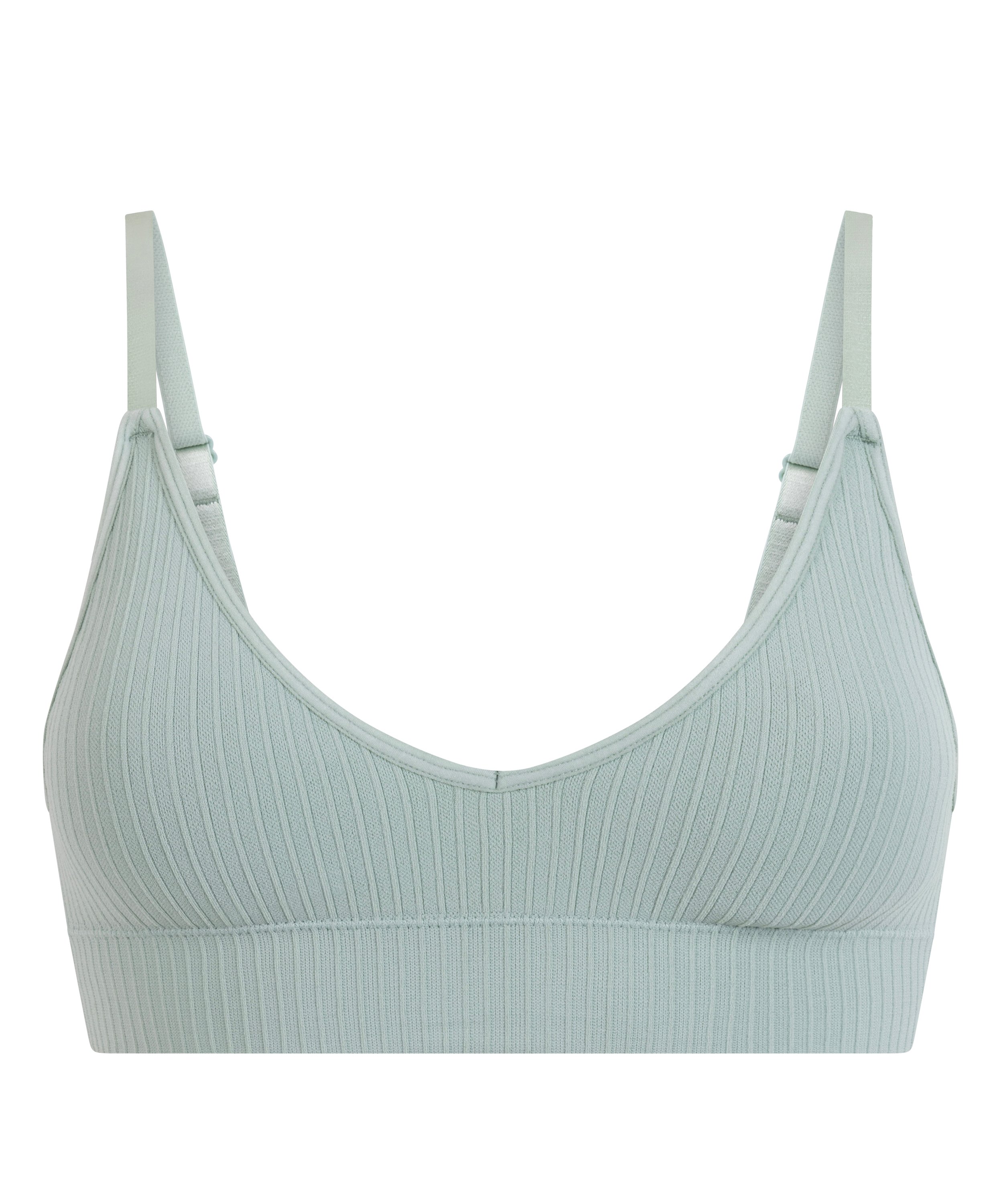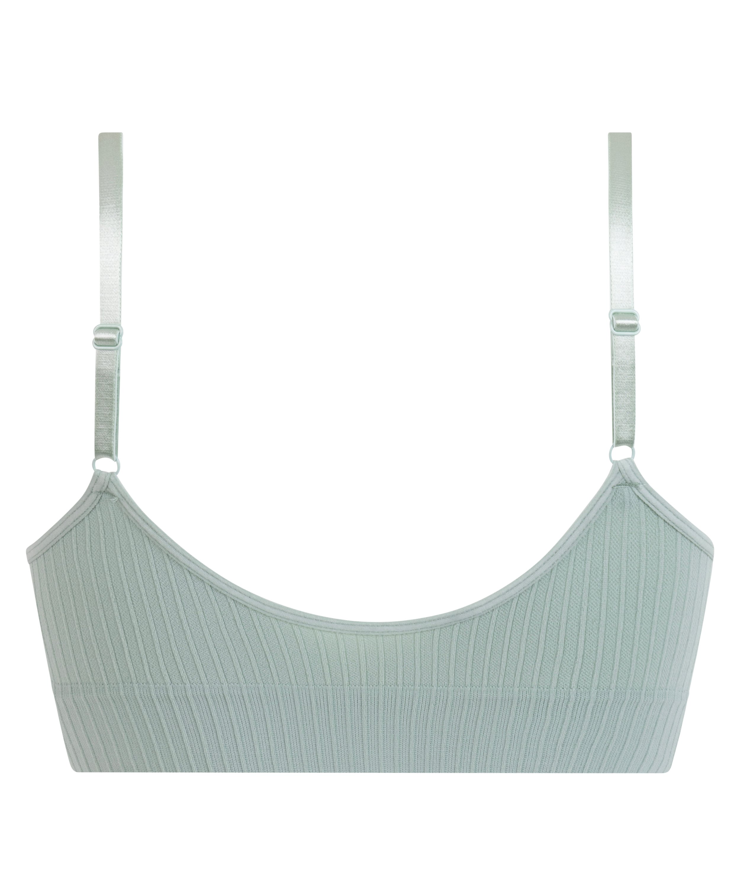 Wybierz komfort! Ta braletka zapewnia wsparcie dzięki wygodnej tkaninie w prążki oraz szerokiemu paskowi pod spodem i jest idealna do noszenia pod topami. Z odpinaną podszewką. Uzupełnij swoją stylizację majtkami z wysokim stanem lub stringami.