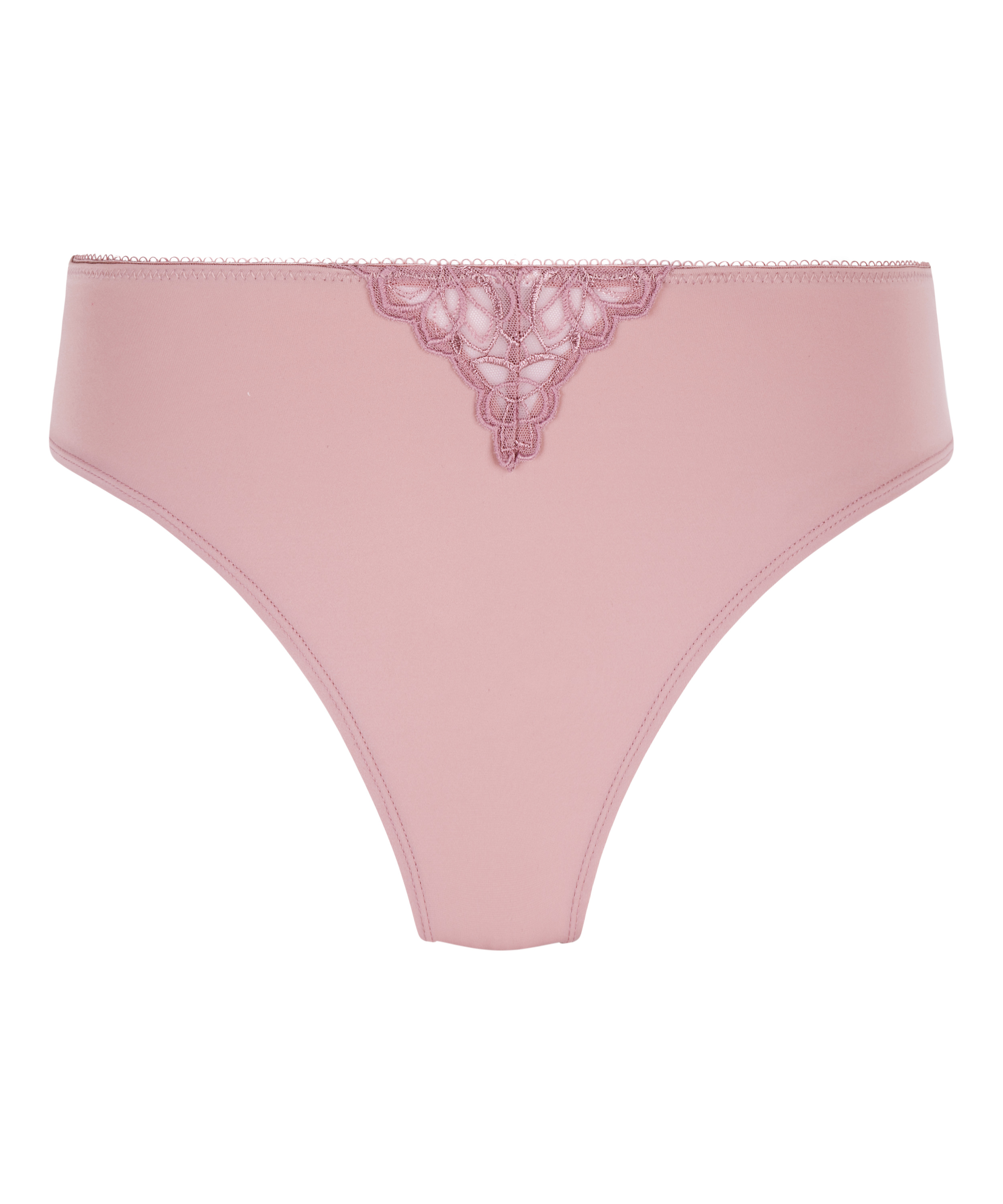Najpopularniejsze brazyliany od Hunkemöller: z półprzezroczystymi koronkowymi detalami u góry. Tył wykonany jest z nieprzezroczystej tkaniny z eleganckim marszczeniem.