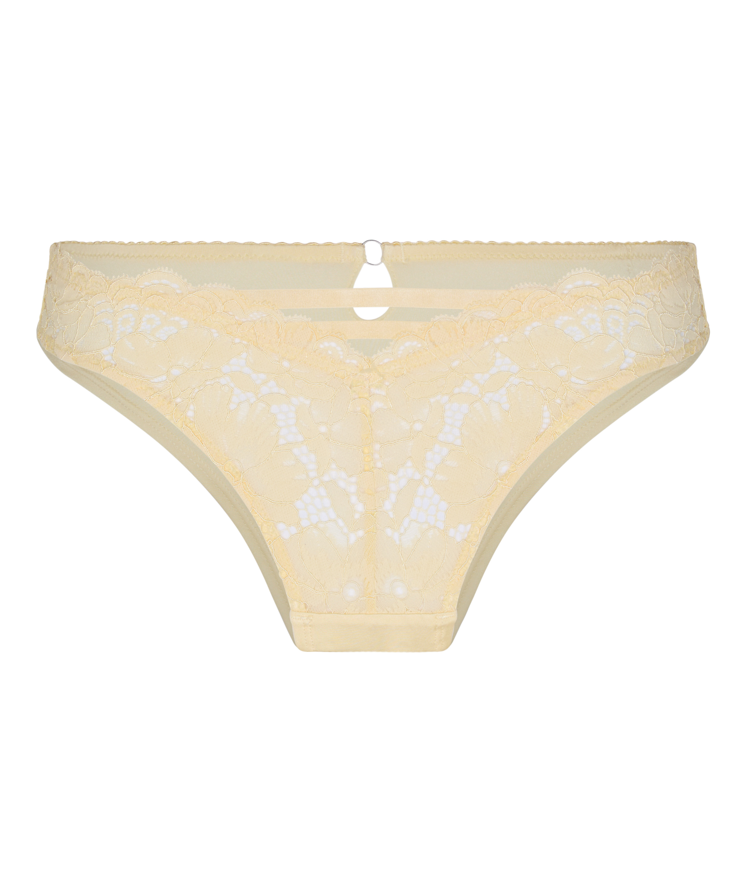 Poczuj się świetnie w tych zniewalających brazylianach! Wspaniałe koronkowe zdobienia z przodu i z tyłu sprawią, że poczujesz się pewna siebie i pełna mocy. Dopełnij swój wygląd o nasz pasujący biustonosz i ciesz się dniem z niezrównaną elegancją i wdziękiem!