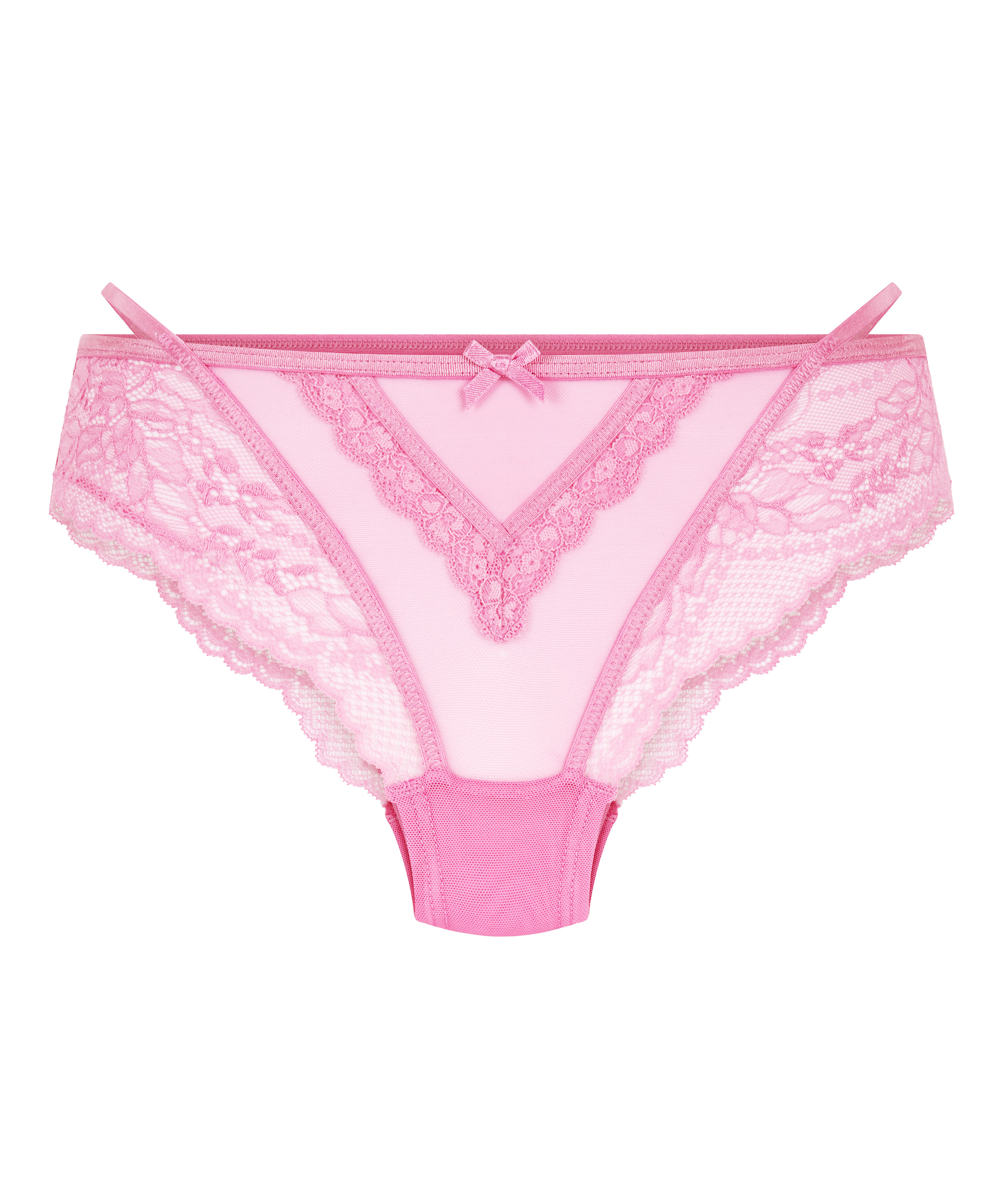 Brazyliany z prawdziwym efektem wow! Te brazyliany są wykończone dużą ilością koronki i mają kokardkę z przodu. Połącz je z pasującym biustonoszem lub braletką, aby uzyskać kompletny zestaw.