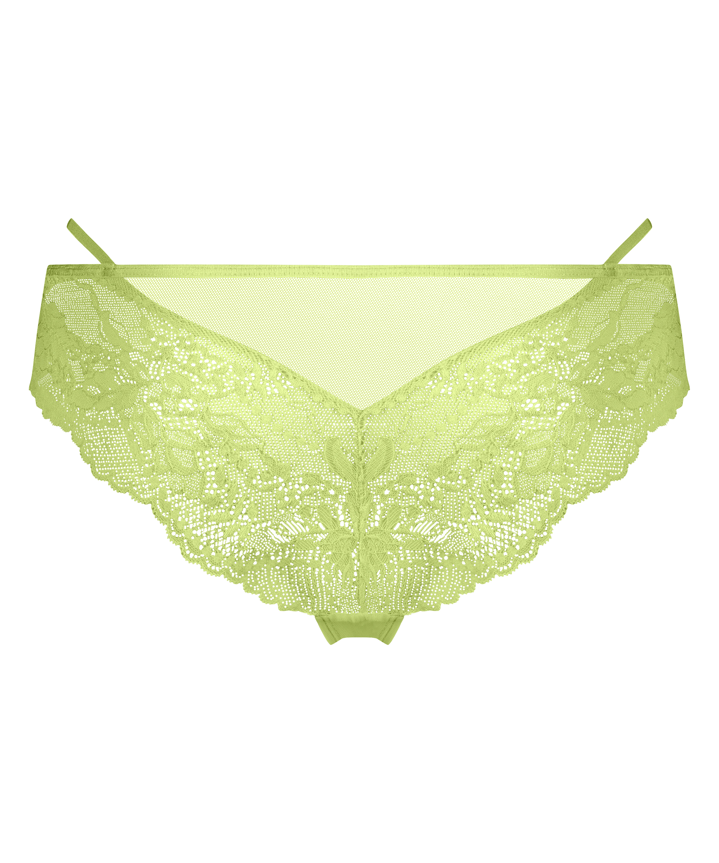 Brazyliany z prawdziwym efektem wow! Te brazyliany są wykończone dużą ilością koronki i mają kokardkę z przodu. Połącz je z pasującym biustonoszem lub braletką, aby uzyskać kompletny zestaw.
