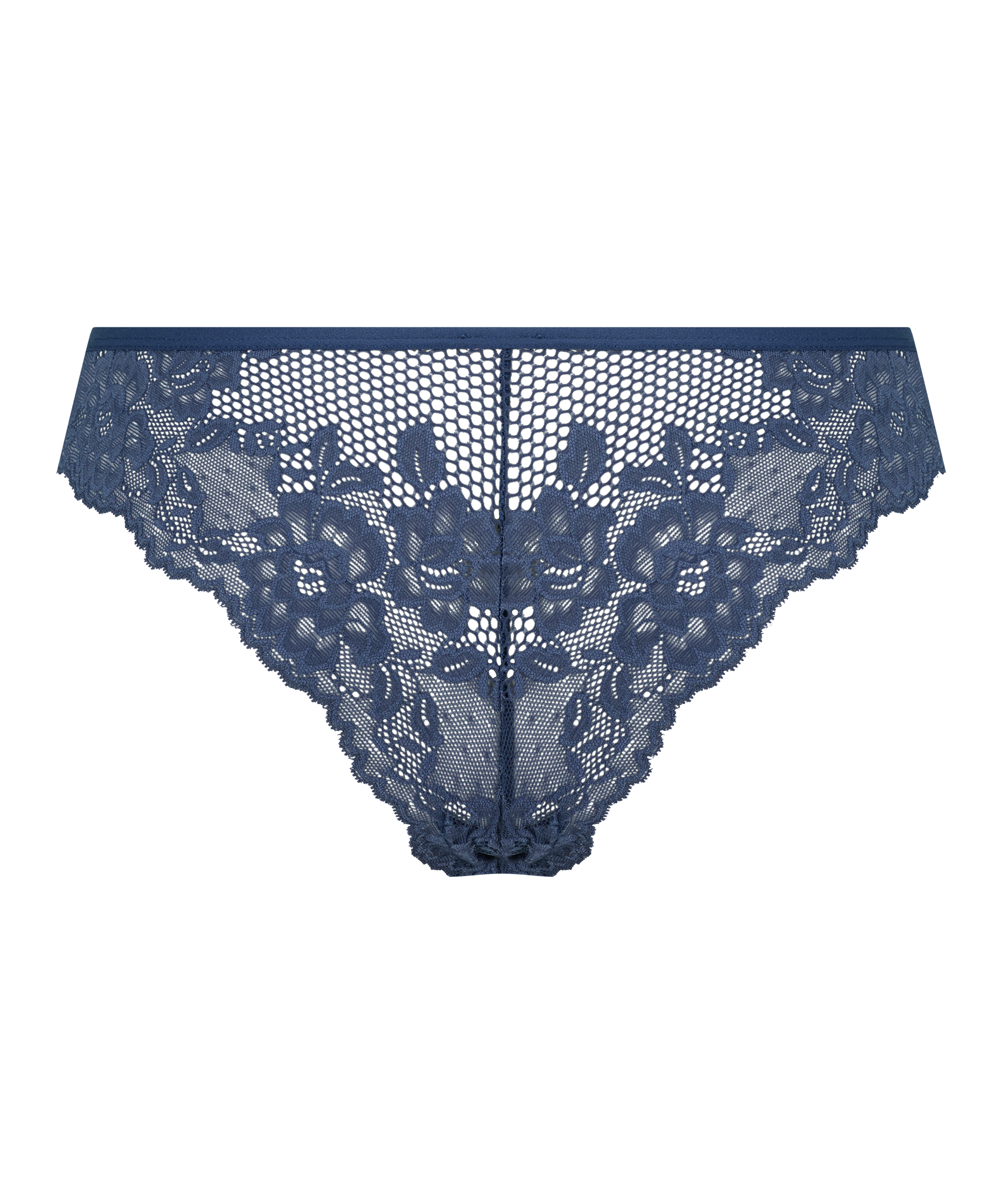 Te półprzezroczyste brazyliany są wykończone dużą ilością koronki. Ozdobę stanowi mała kokardka z przodu.