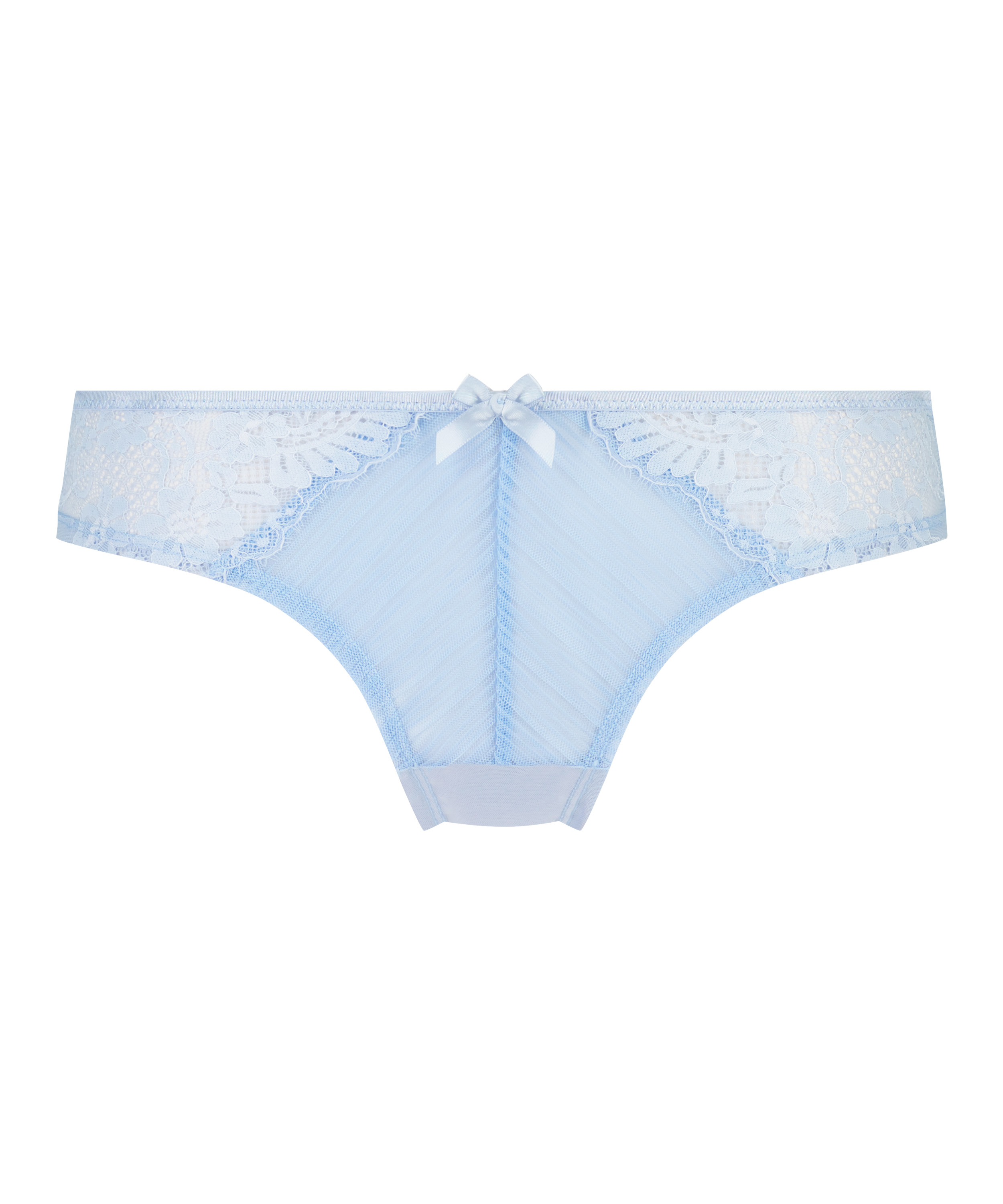 W tych brazylianach poczujesz się komfortowo! Z przodu i z tyłu mnóstwo siatki, a na całej powierzchni mnóstwo koronkowych ozdób. Wykończenie za pomocą kokardki z przodu. Połącz z dopasowanym biustonoszem, aby stworzyć komplet!