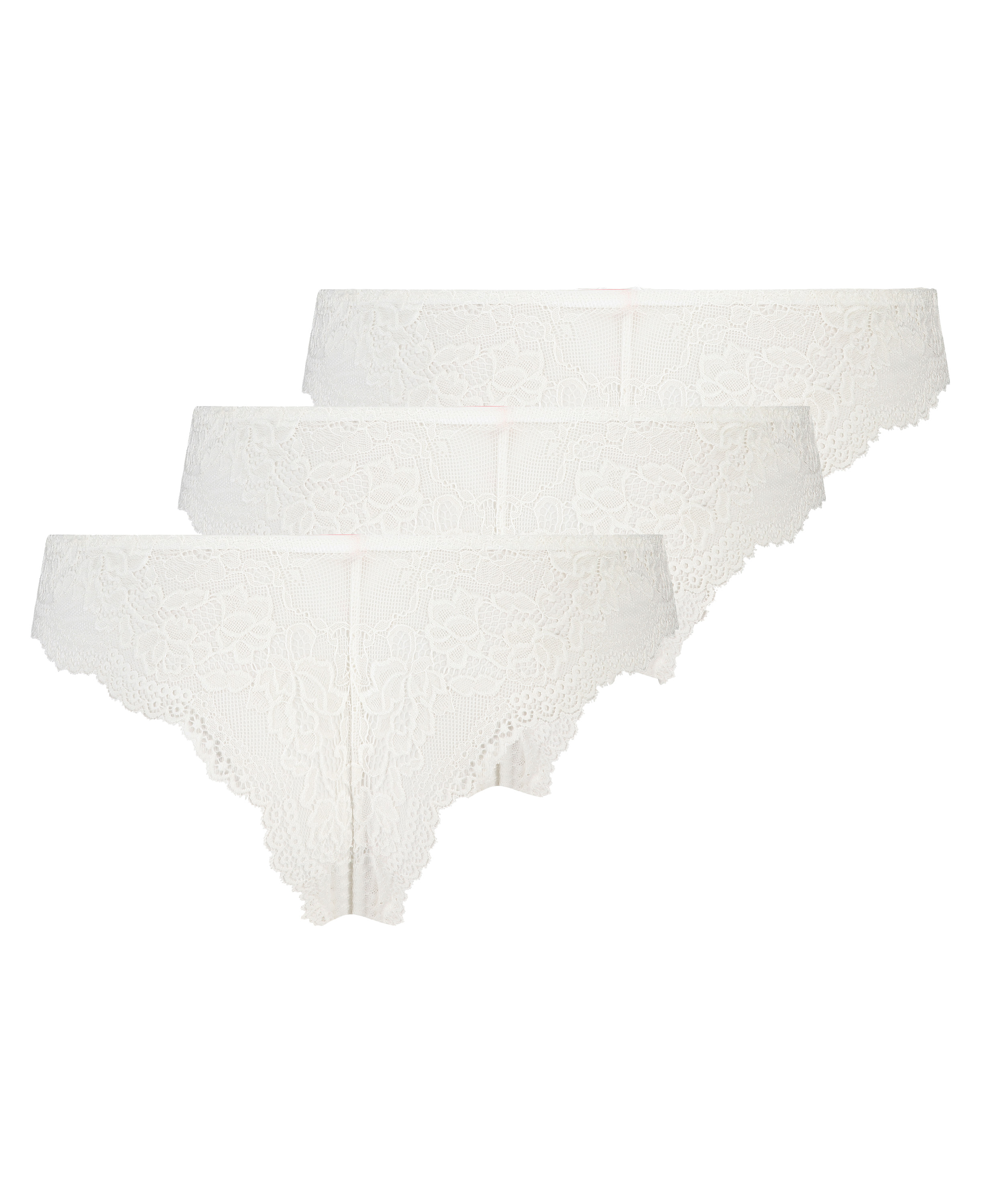 Poczuj się seksownie w tych brazylianach! Są one w całości wykończone koronką i mają małą kokardkę z przodu jako dodatek. Poręczny 3-pak, dzięki czemu będziesz wyglądać zjawiskowo każdego dnia.