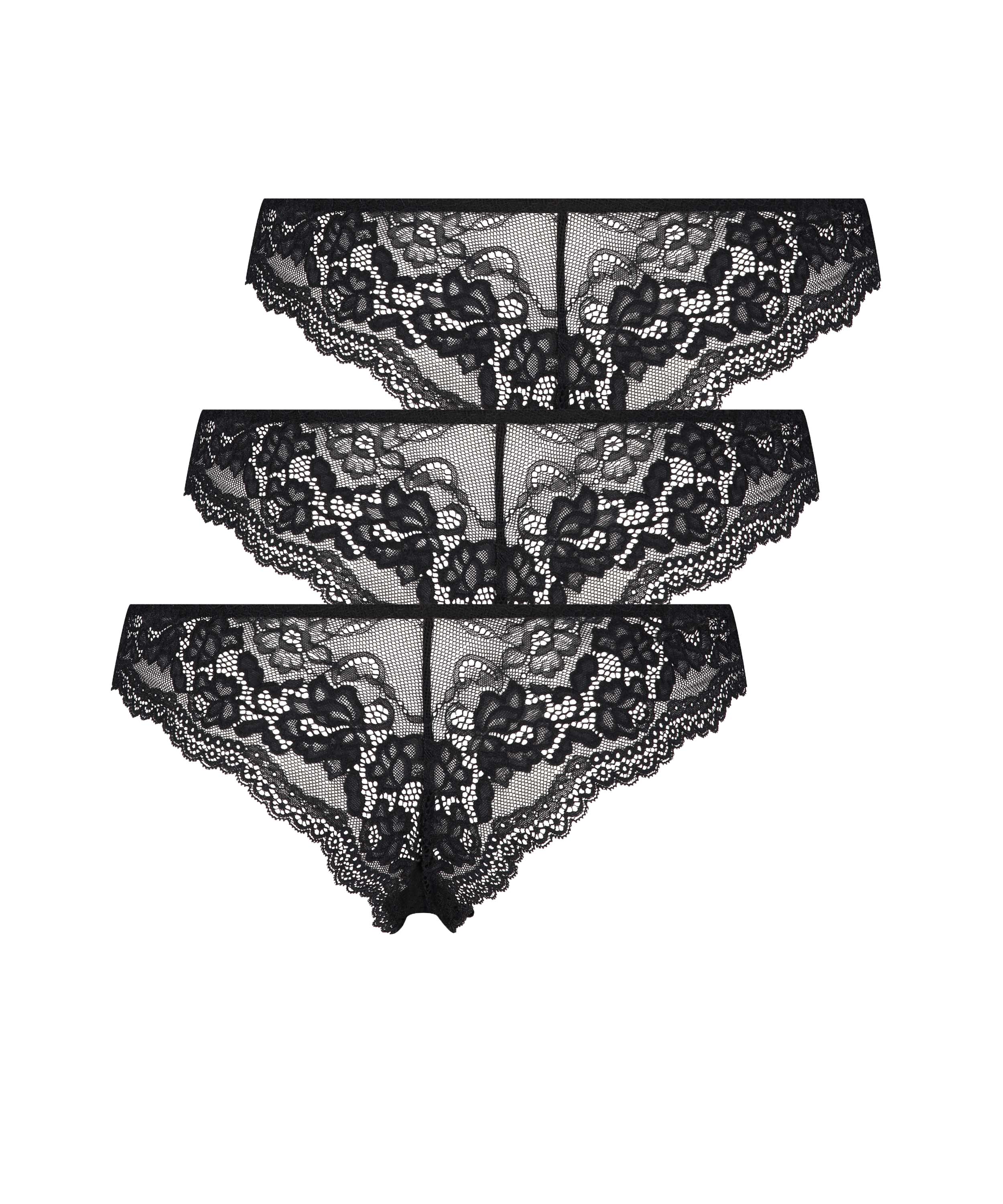 Poczuj się seksownie w tych brazylianach! Są one w całości wykończone koronką i mają małą kokardkę z przodu jako dodatek. Poręczny 3-pak, dzięki czemu będziesz wyglądać zjawiskowo każdego dnia.