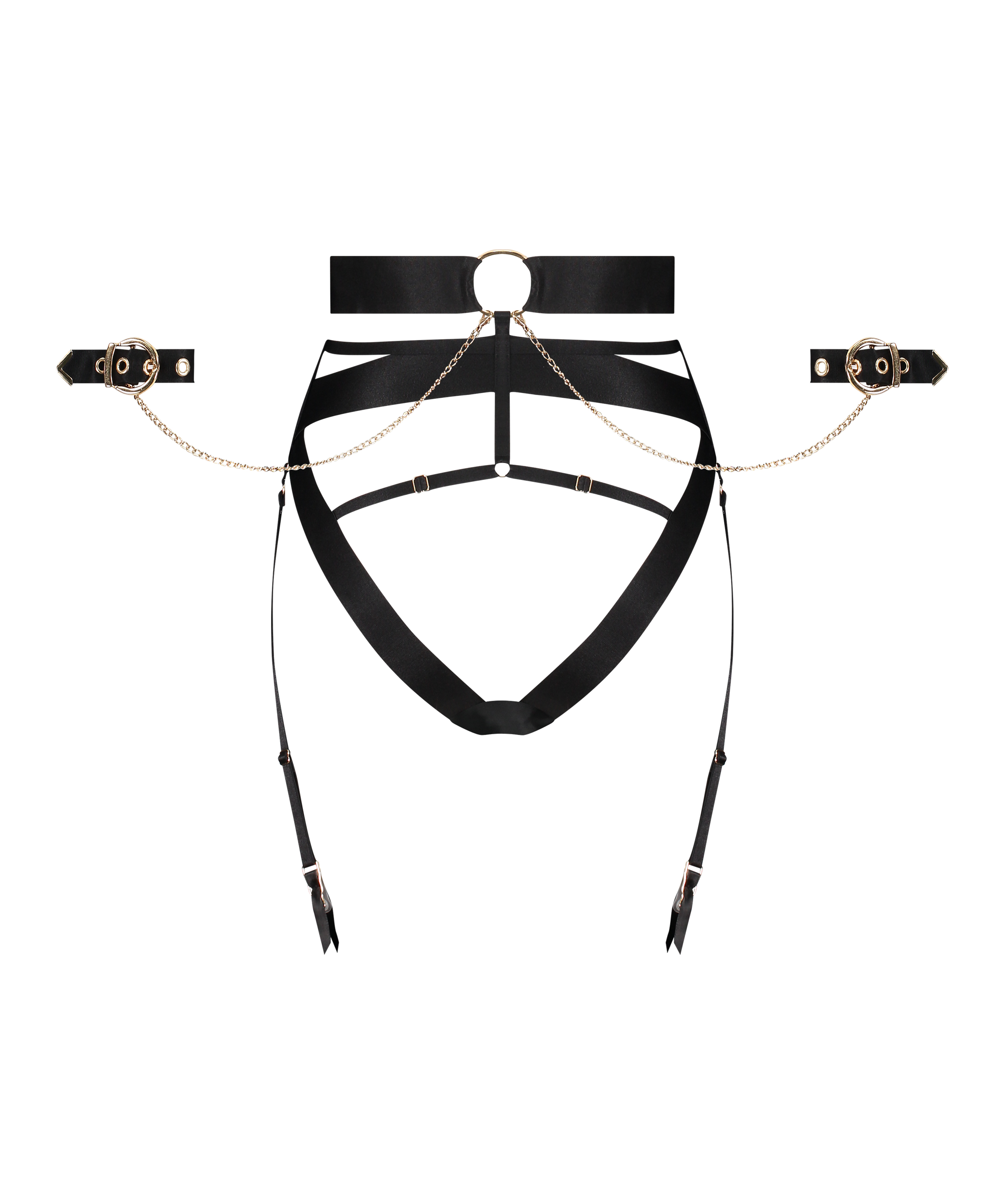 Poczuj się seksownie w tej gorącej brazylijce! Z seksownymi koronkowymi detalami z przodu i otwartym tyłem. Istnieje wiele pasiastych detali, które zapewniają ekscytujący wygląd. Nie zapomnij o zdejmowanych kajdankach, które są wykonane, aby dodać dodatkowy poziom pikanterii. Znajdź pasujący biustonosz, aby skompletować zestaw.