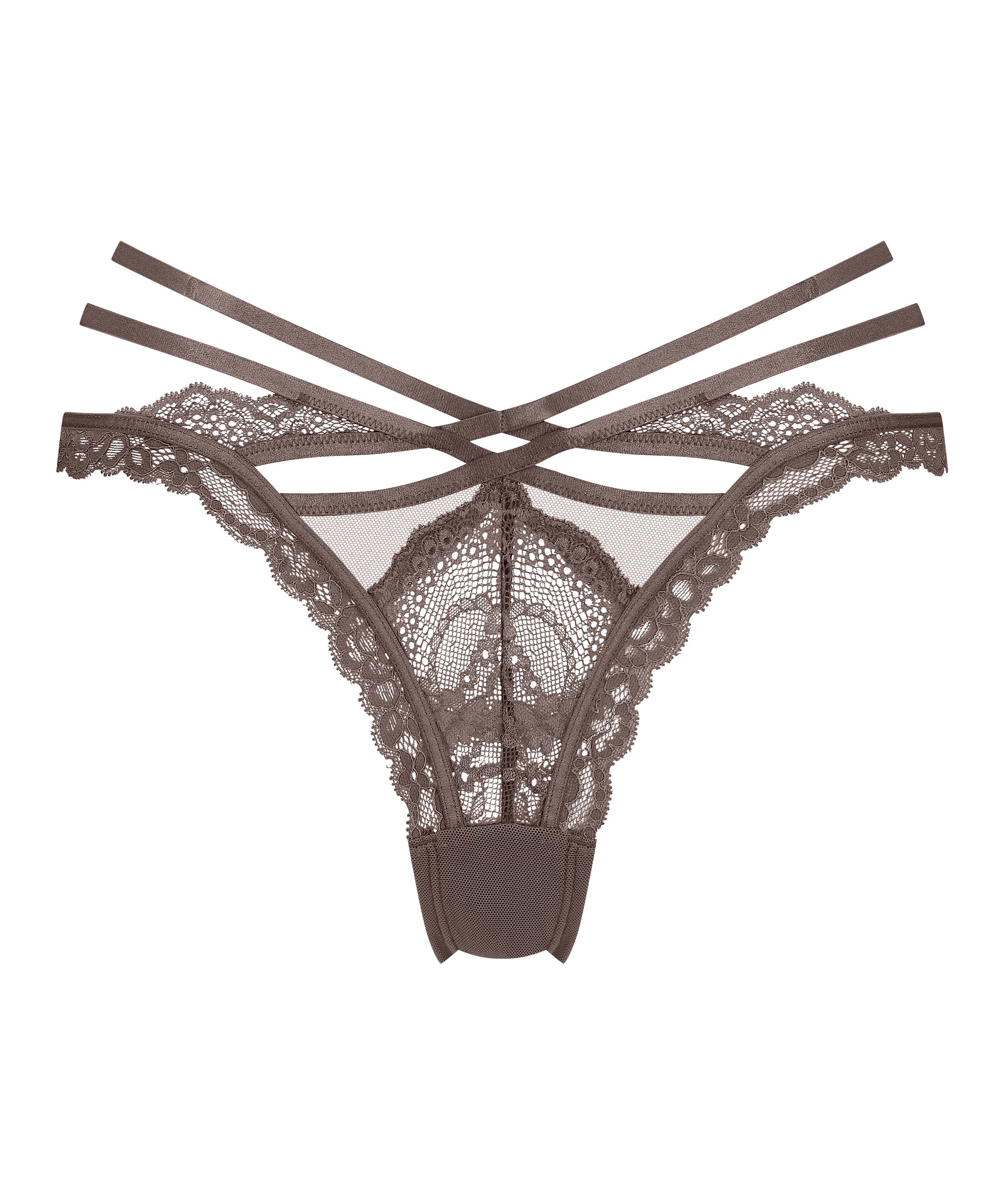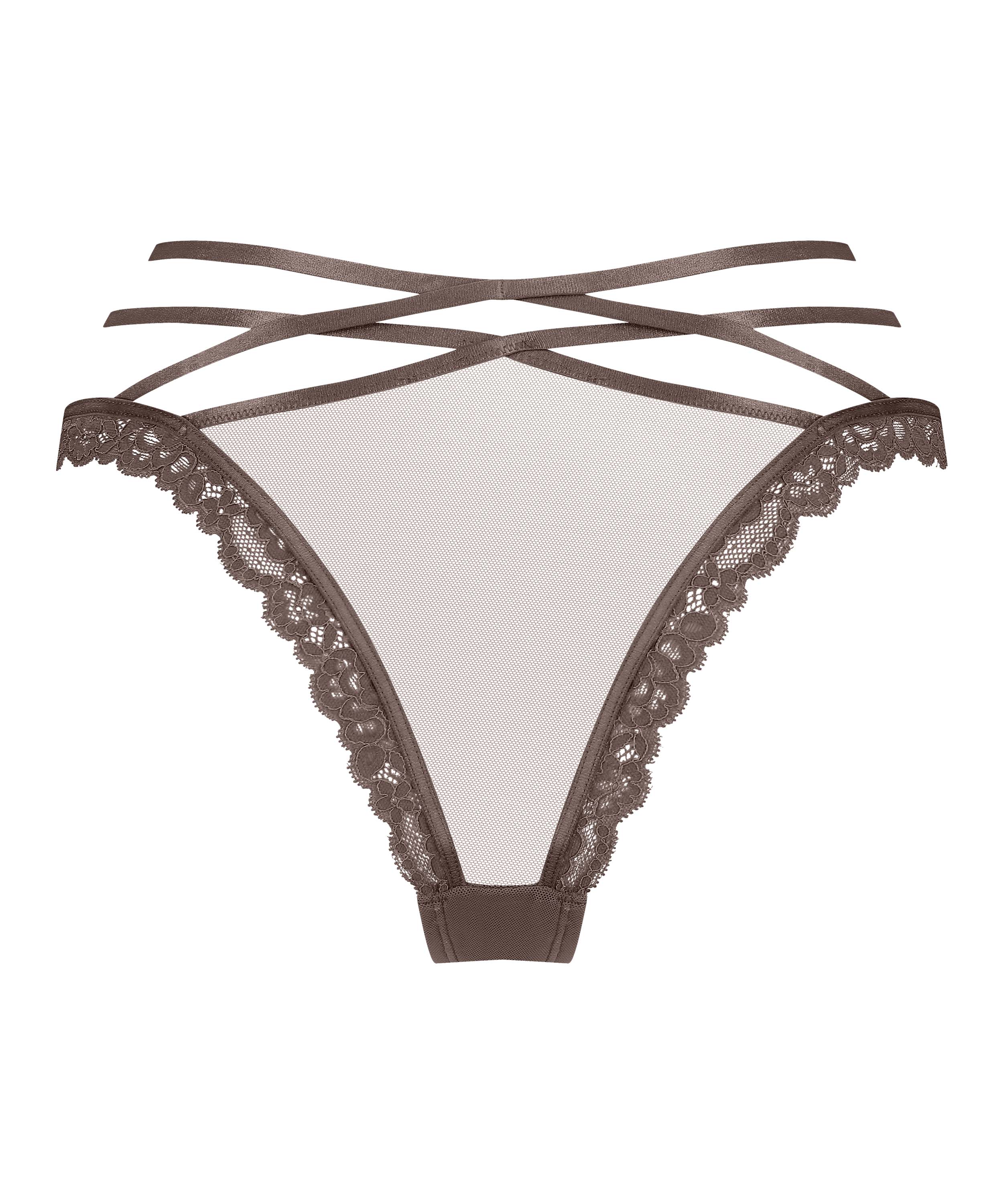Przedstawiamy nasze zniewalające brazyliany Janine! Model ozdobiony delikatną koronką z przodu i siateczką z tyłu, z misternymi detalami w postaci pasków w talii, zapewnia idealną równowagę pomiędzy elegancją i zmysłowością. Połącz je bez wysiłku ze swoim ulubionym biustonoszem, aby stworzyć zestaw!