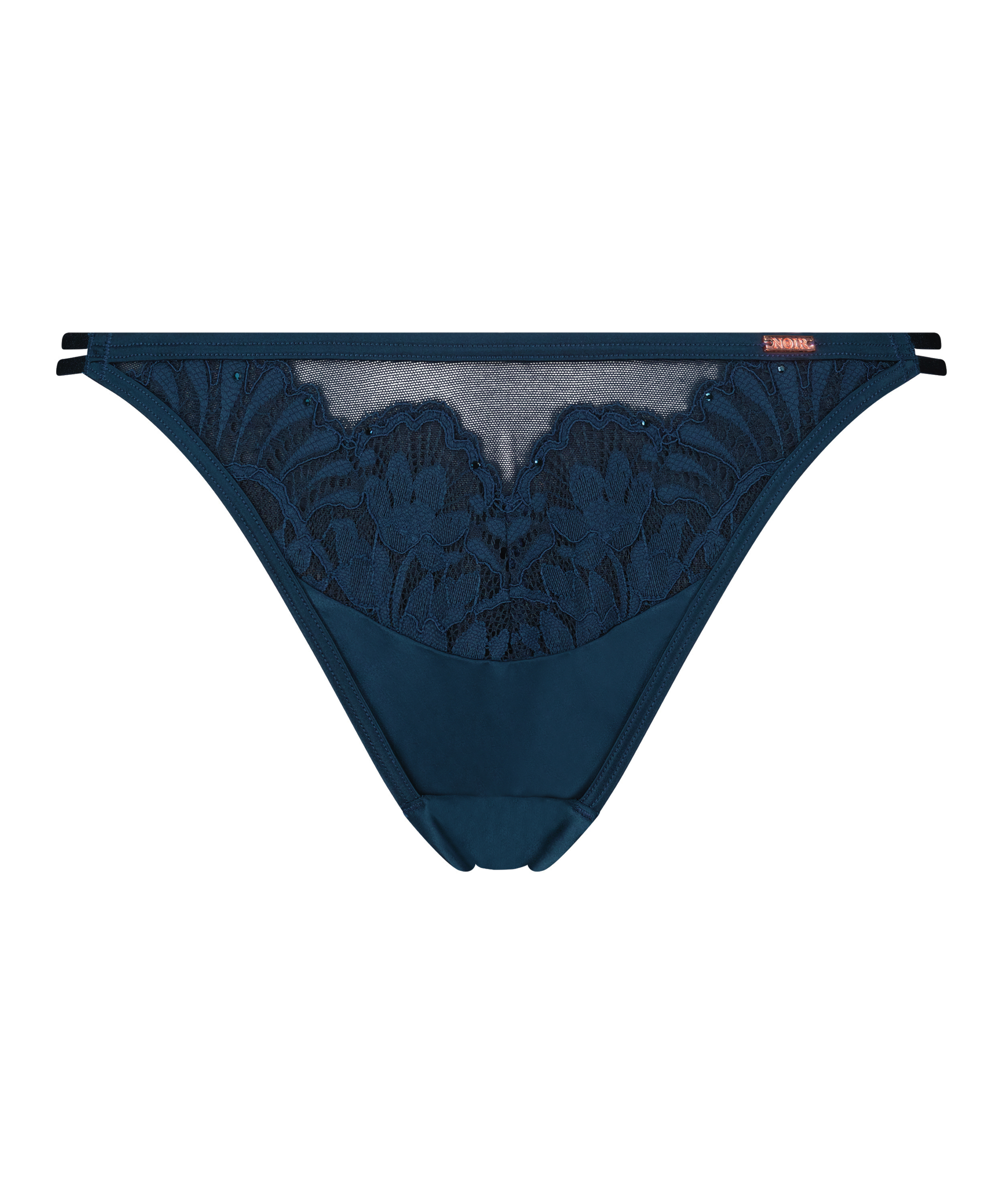 Korzystaj w pełni z tych koronkowych majtek brazylijskich! Półprzezroczysty model ze wzmocnieniami z przodu. Połącz z biustonoszem z kompletu! Część kolekcji Noir.