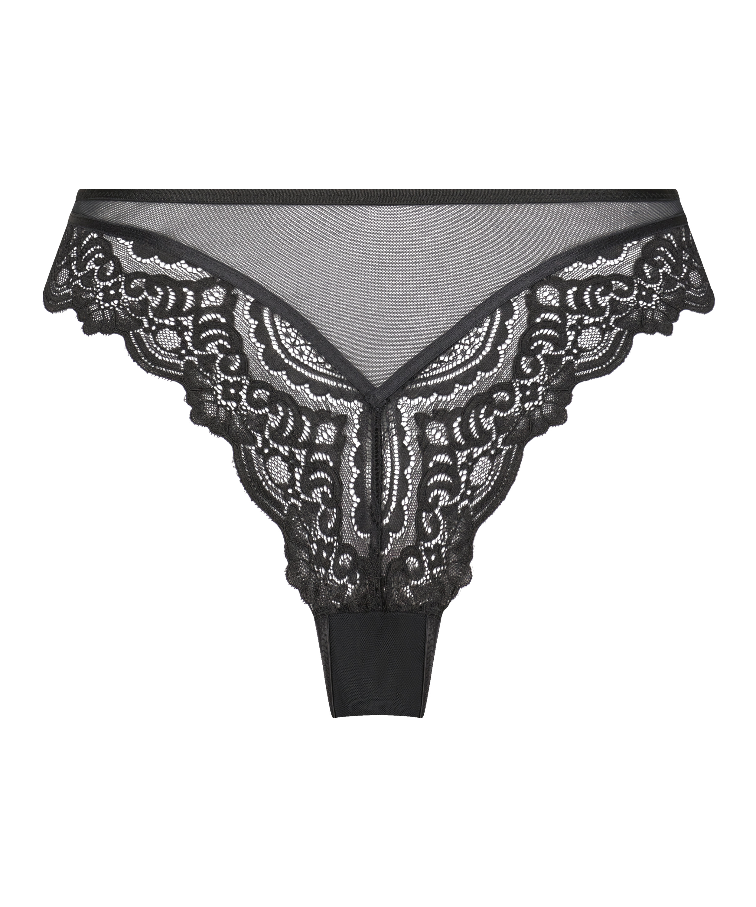 Poczuj się dobrze w tych brazylianach! Doskonały krój z wysokim stanem, dzięki któremu poczujesz się bardziej pewna siebie i seksowna. Z koronkowymi detalami i prześwitującym materiałem z tyłu. Znajdź pasujące biustonosze z kolekcji!