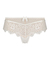 Te brazyliany podkreślą twoje kształty. Mają koronkowe wykończenie i prześwitujący materiał z kropkami.