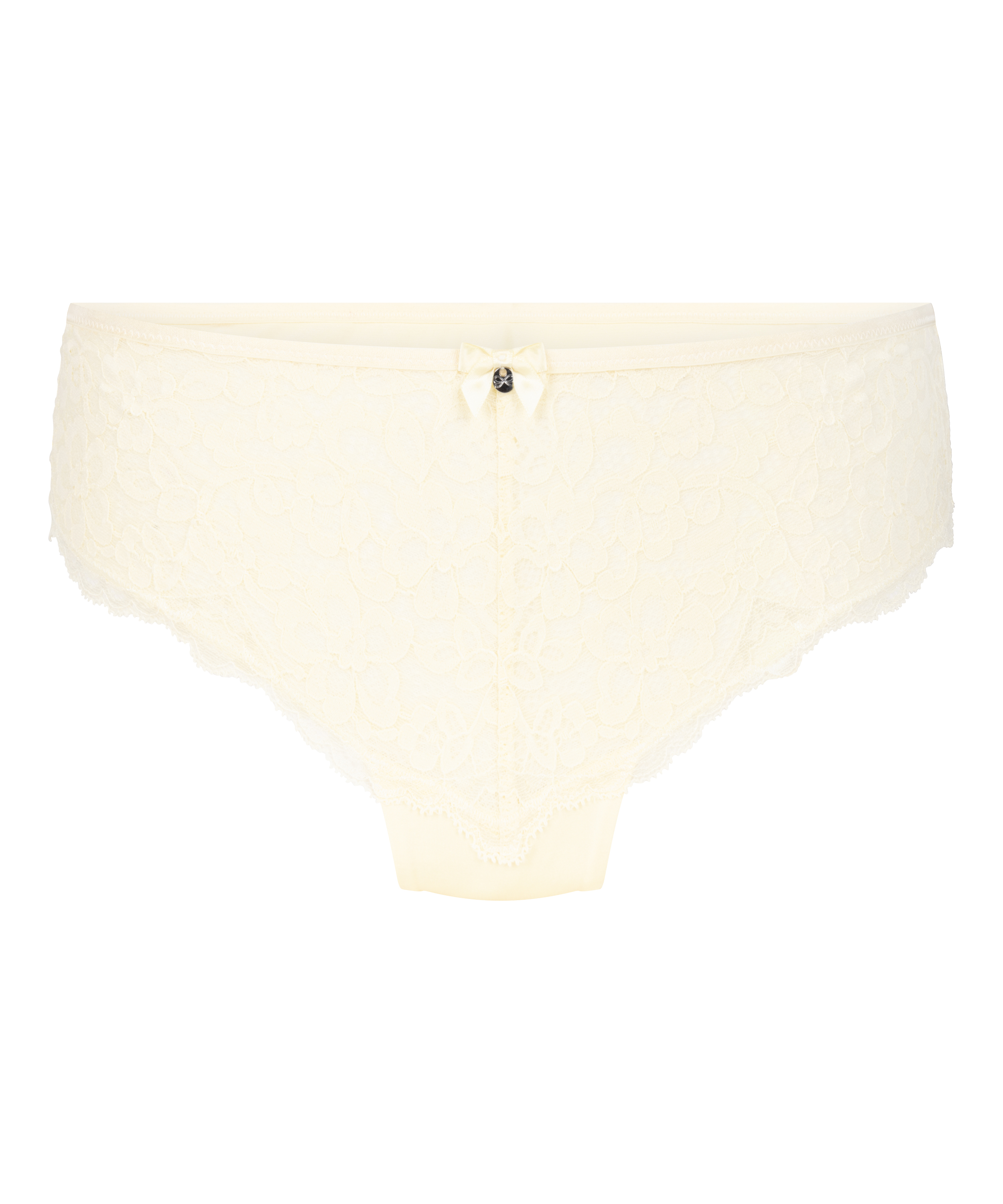 Te figi brazylijskie wykończone są koronką, co nadaje im superseksowny wygląd. Mała kokardka na środku dodaje uroku. Połącz z pasującym biustonoszem, aby uzyskać kompletny look.
