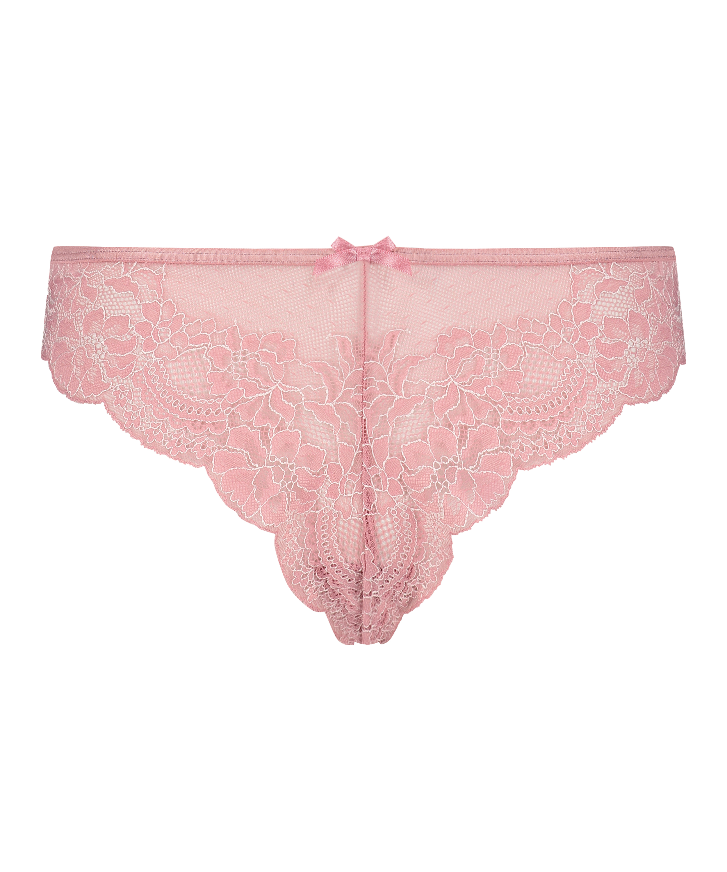 Uzupełnij swój seksowny styl o te seksowne brazyliany! Wykonane jest z półprzejrzystej koronki, a kokardka z przodu stanowi wspaniałe wykończenie. Połącz je z własnym ulubionym biustonoszem!