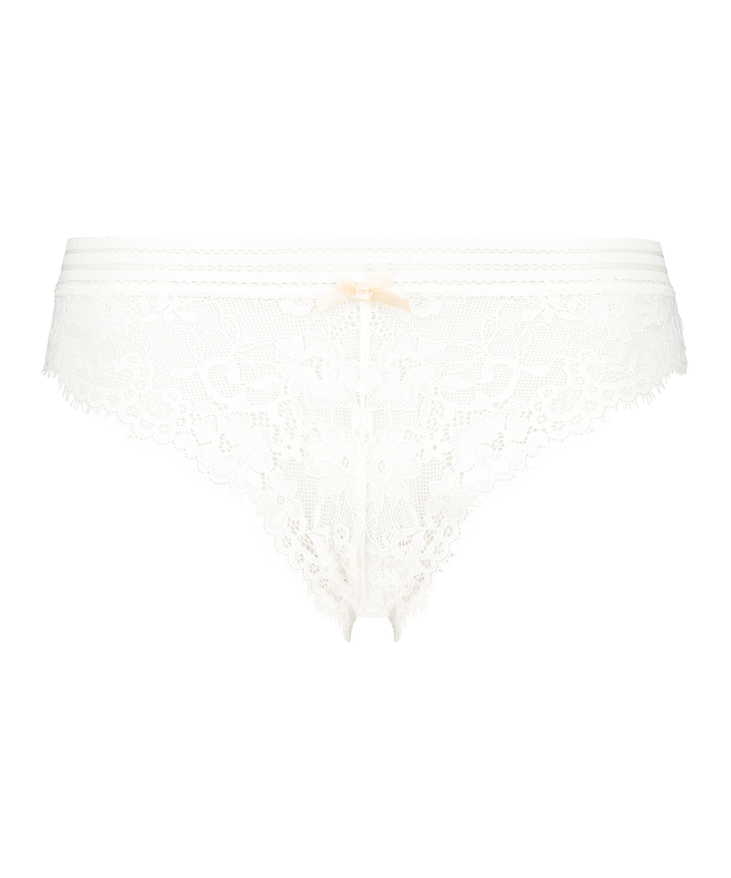 Są niemal w całości wykonane z koronki! Wspaniały! Te majtki mają elastyczny pas i słodką kokardkę. Połącz z dopasowanym biustonoszem lub braletką, aby stworzyć komplet.